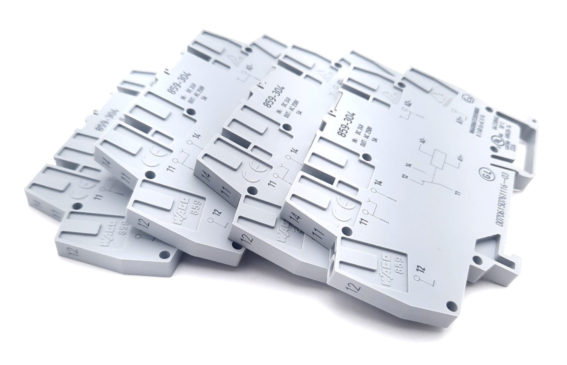 New – Open box Lot of 4 Wago 859-304 Relay Terminal Blocks, 24VDC Supply, 5A 250VAC Contact