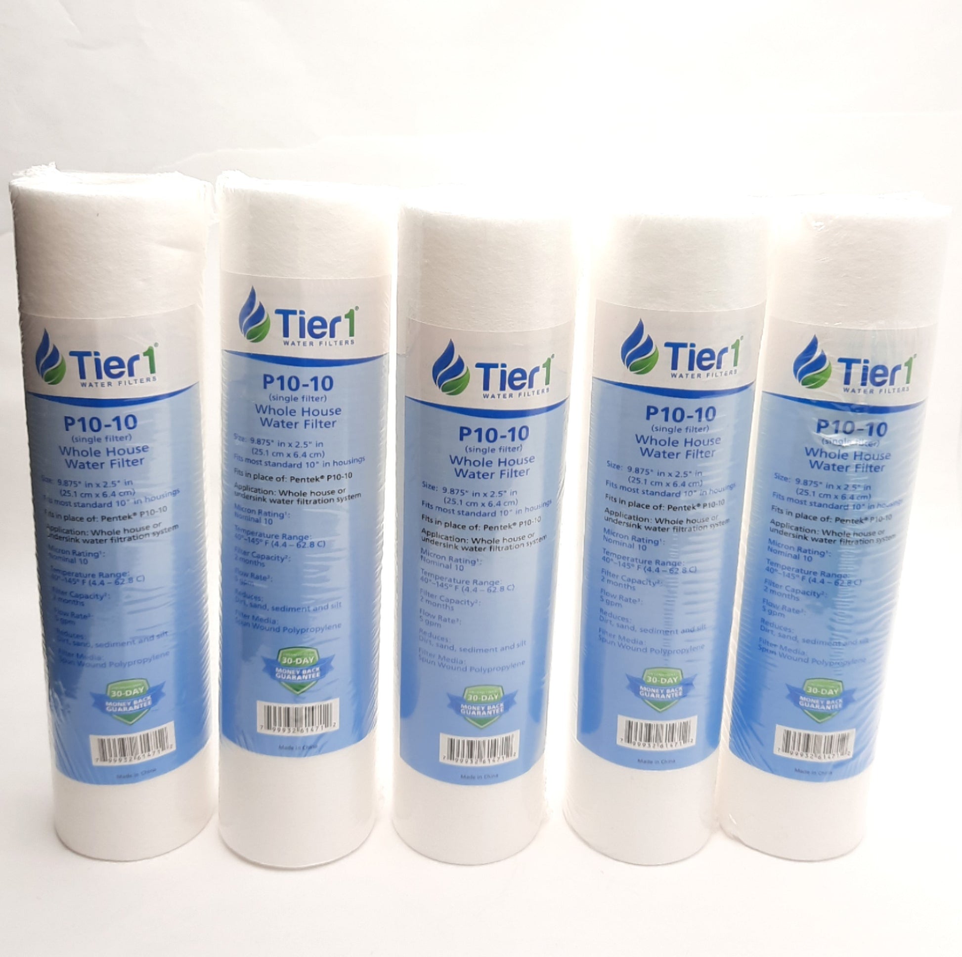 New – Open box Lot of 5 Tier1 P10-10 Whole House Water Filter 9.875" x 2.5", 10 Micron, 5 gpm