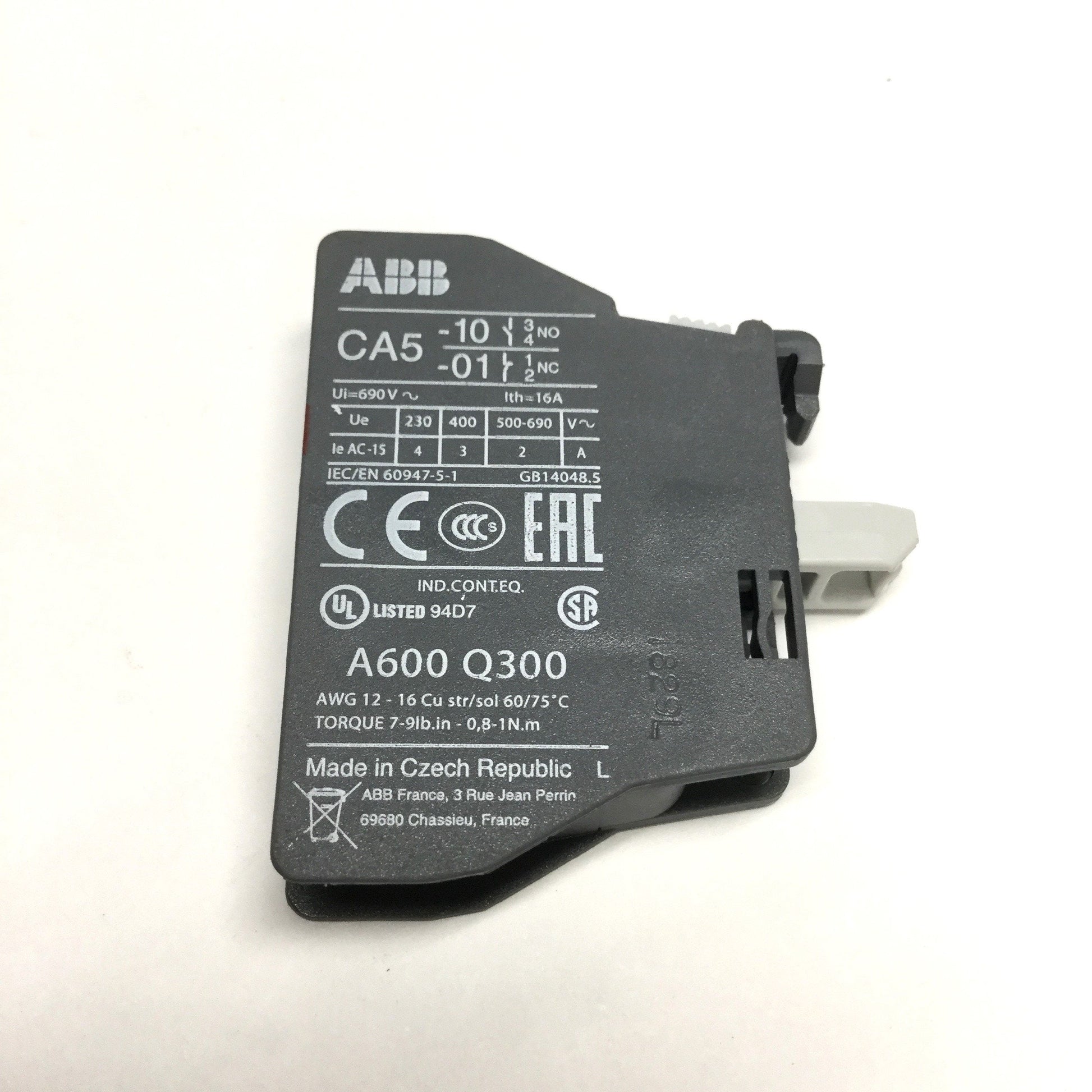 New – Open box Lot of 9 ABB CA5-01 Auxiliary Contact Blocks Normally Closed 600VAC, 6A