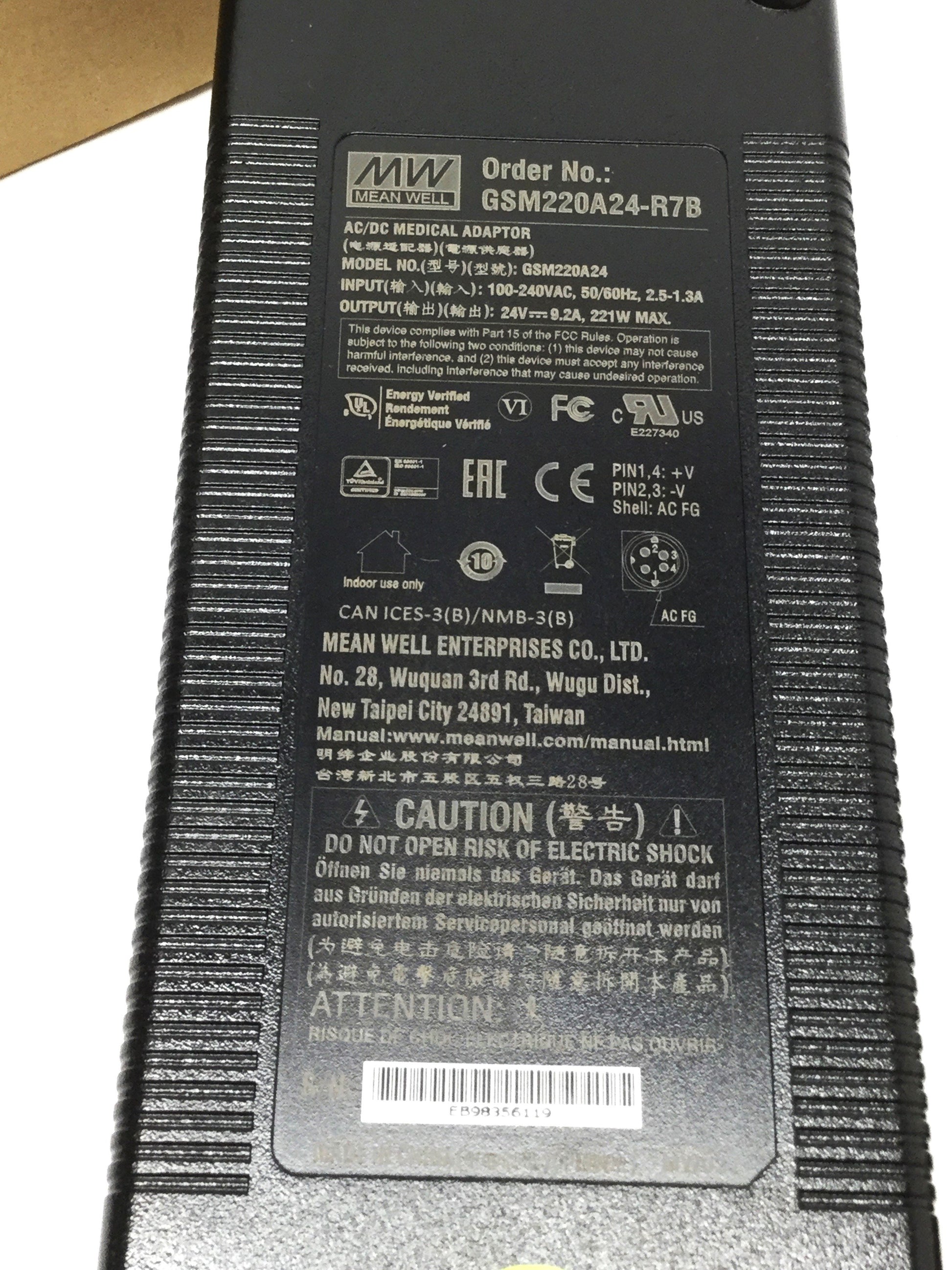 New – Open box Mean Well GSM220A24-R7B Medical Power Supply 120/240VAC In, 4-Pin DIN 24VDC 9.2A