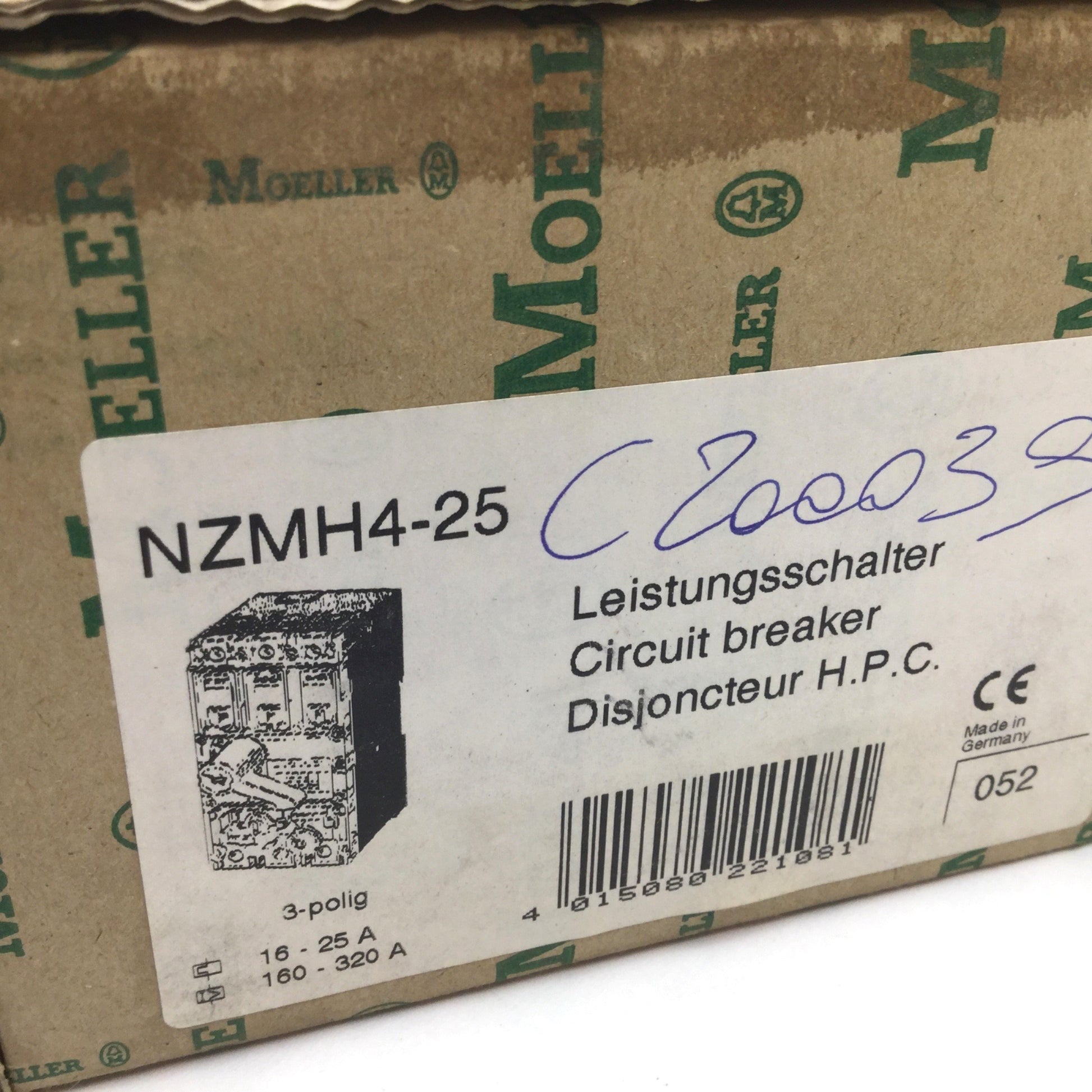 New – Open box Moeller NZMH4-25 Circuit Breaker Disconnect Switch, 3-Pole, Rating: 500VAC 25A