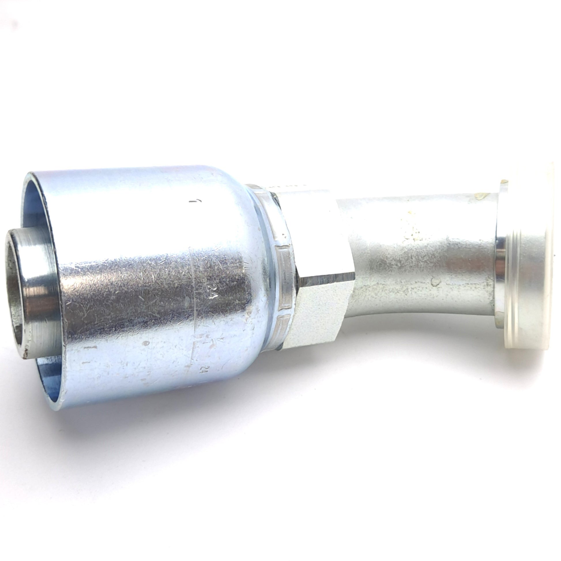 New – Open box Parker 11771-24-24 Crimp Style Hydraulic Hose Fitting, 45° Elbow, ø1.5in Hose ID