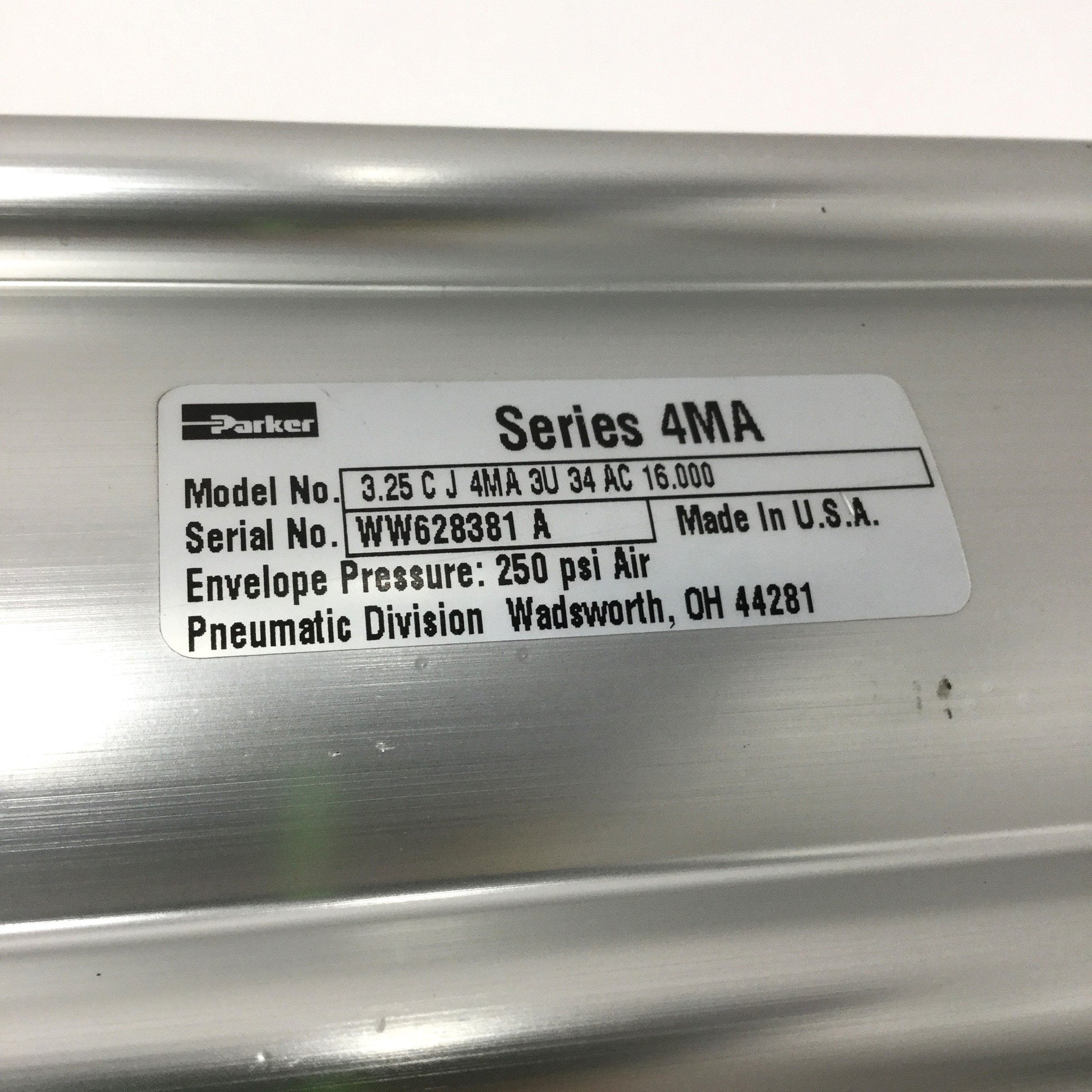 New – Open box Parker 3.25CJ4MA3U34AC16.000 Pneumatic Cylinder Ø3-1/4" Bore, 16" Stroke, 250psi