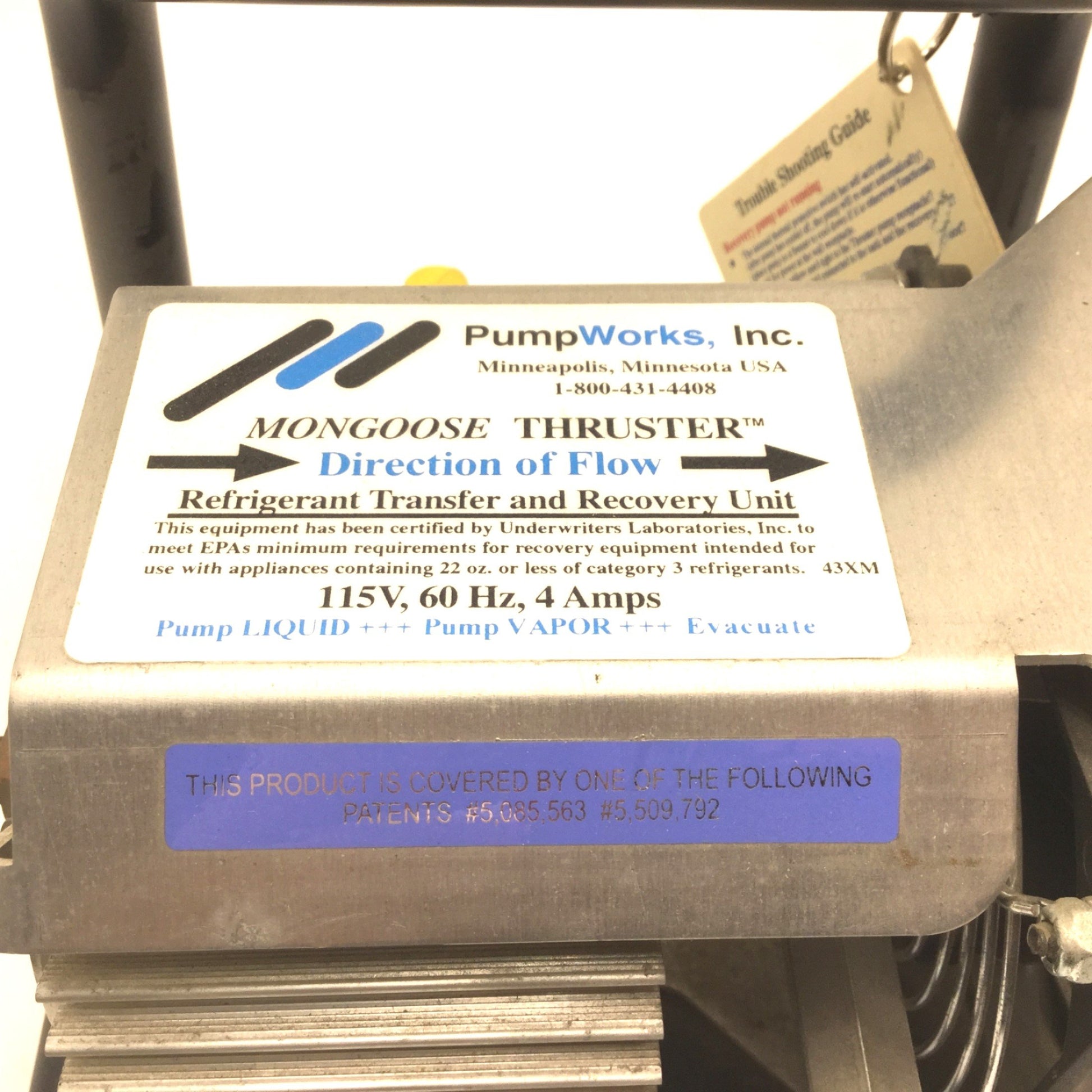 New – Open box Pump Works PW2169MTF Mongoose Thruster Refrigerant Transfer and Recovery Unit