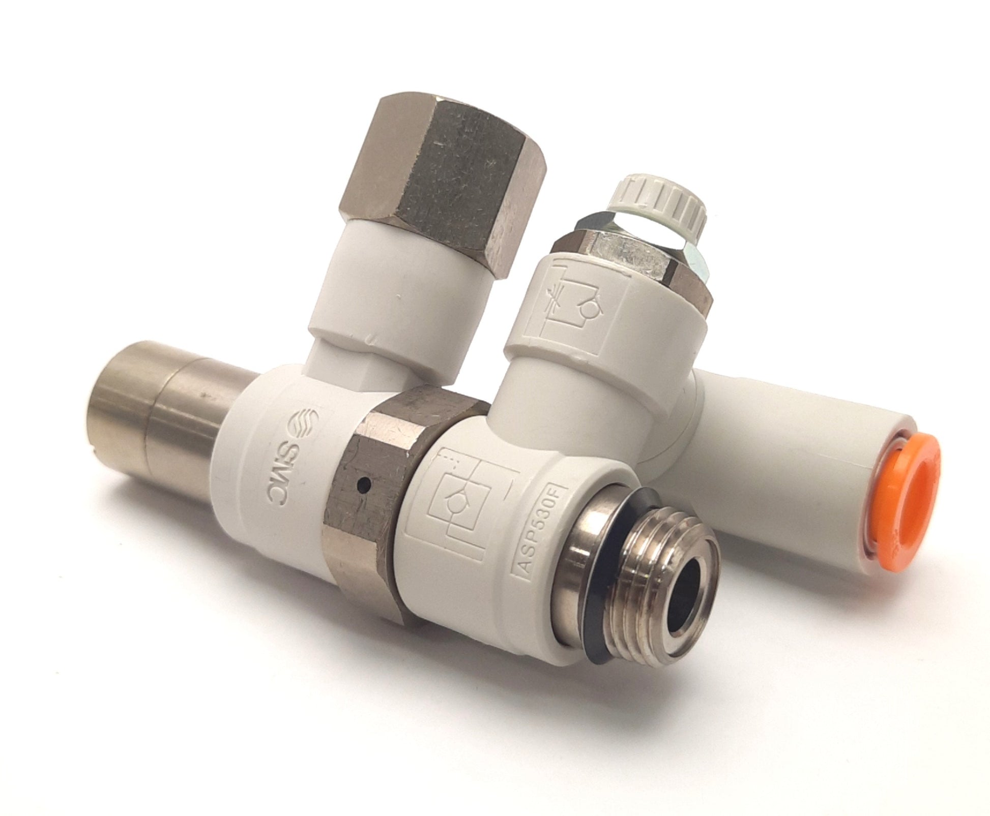 New – Open box SMC ASP530F-U03-11-X352 Speed Control W/ Check Valve, 3/8" Tube to 3/8" G Thread