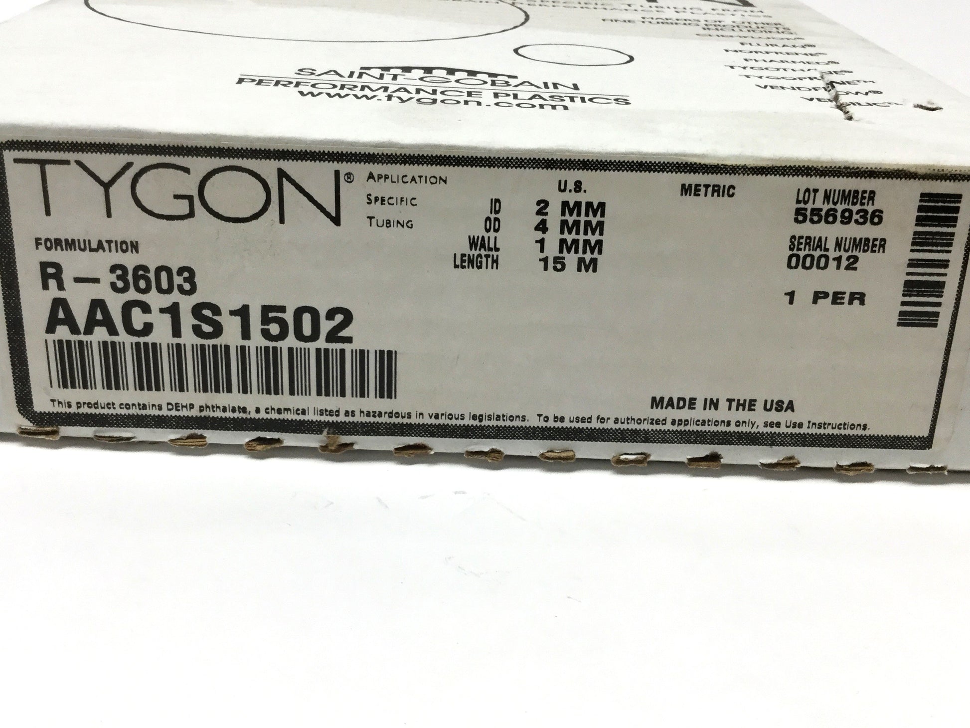 New – Open box Tygon AAC1S1502 R-3603 Lab Pump Tubing Hose 2mm ID, 4mm OD, 15m Long