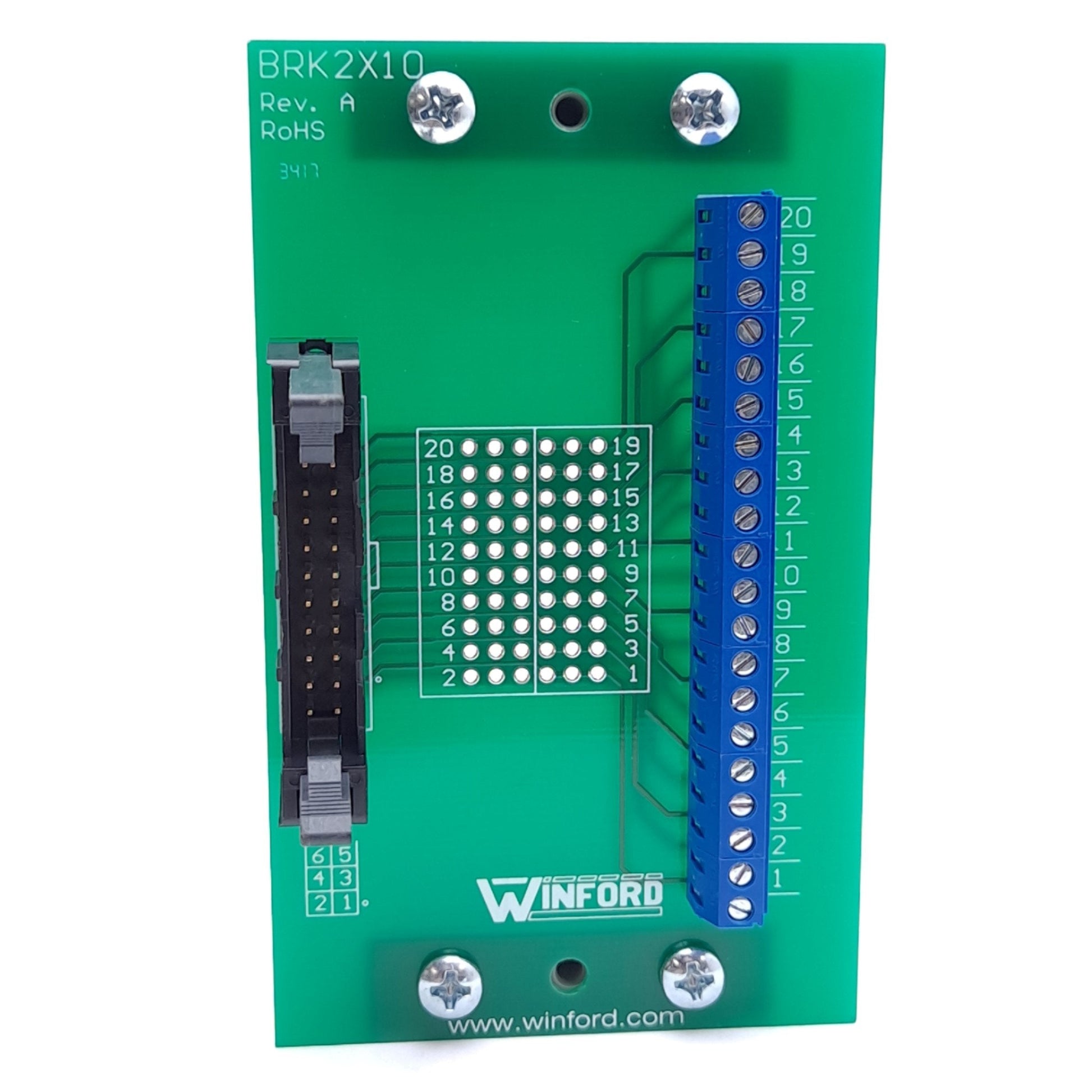 New – Open box Winford Engineering BRK2X10-L-DIN Breakout Board, IDC20 Male to Screw Terminals