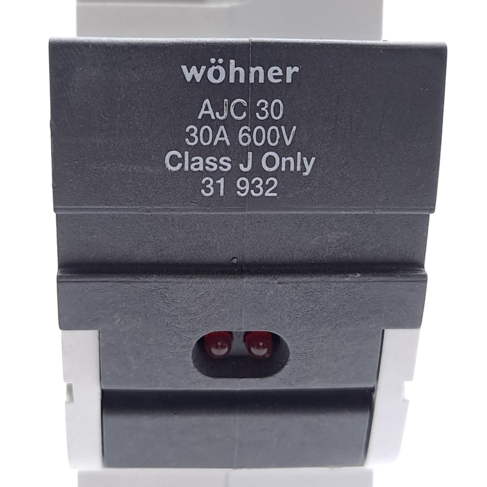New – Open box Wohner 31932 Fuse Holder, Class J, 1-Pole, 30A, 110-600VAC/DC, DIN Rail