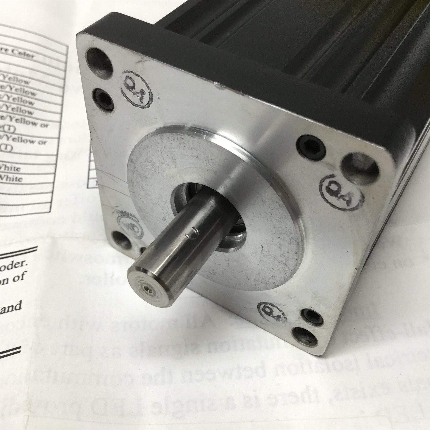 This unit is from unused stock. It was coupled to a linear stage but was removed, hence the set screw marks on the shaft. Wiring and test data documentation is included. See images for more detail. |