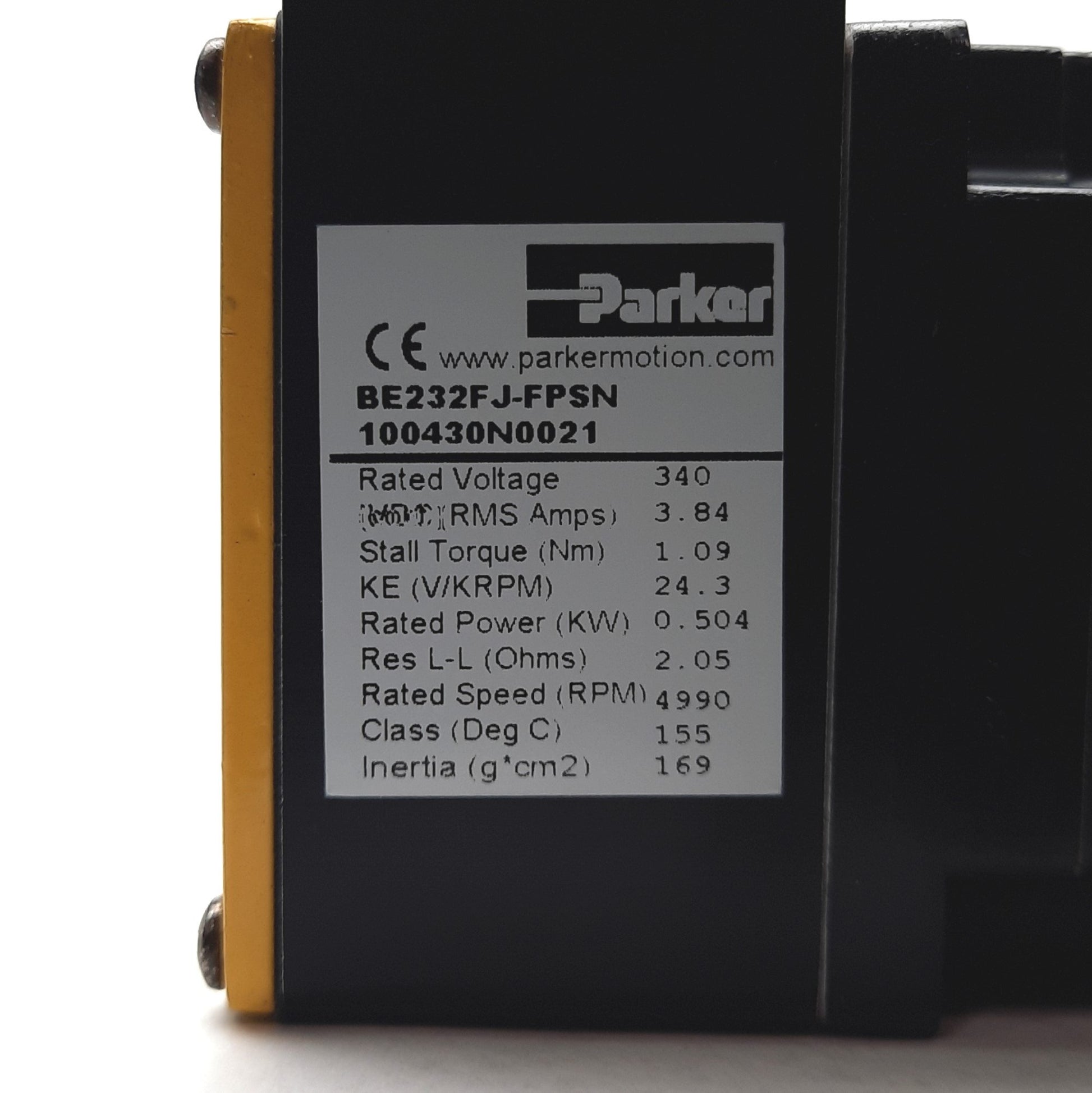 Item Condition: New SKU: SB-187825 ST59-1 From our inventory we are selling a Parker BE232FJ-FPSN Servo Motor, .5kW, 4990RPM, 1.09nm, 340V 3.84A, NEMA 23. Specifications: