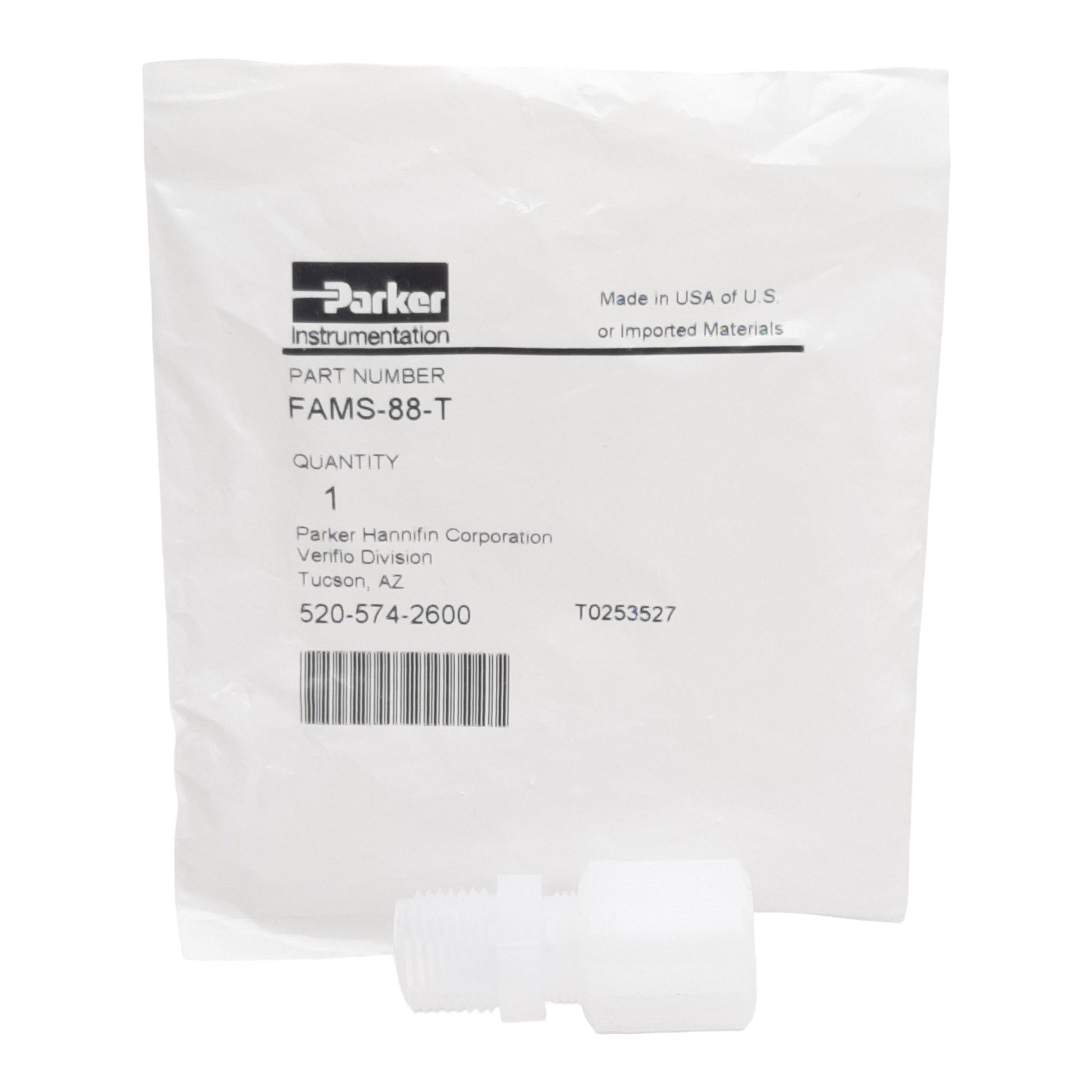 | Item Condition: New SKU: SB-202219 ST8-5-C From our inventory we are selling a Parker FAMS-88-T PFA Tube Fitting ø1/2in Tube x 1/2in NPT Straight Male, 125psig. Specifications:
