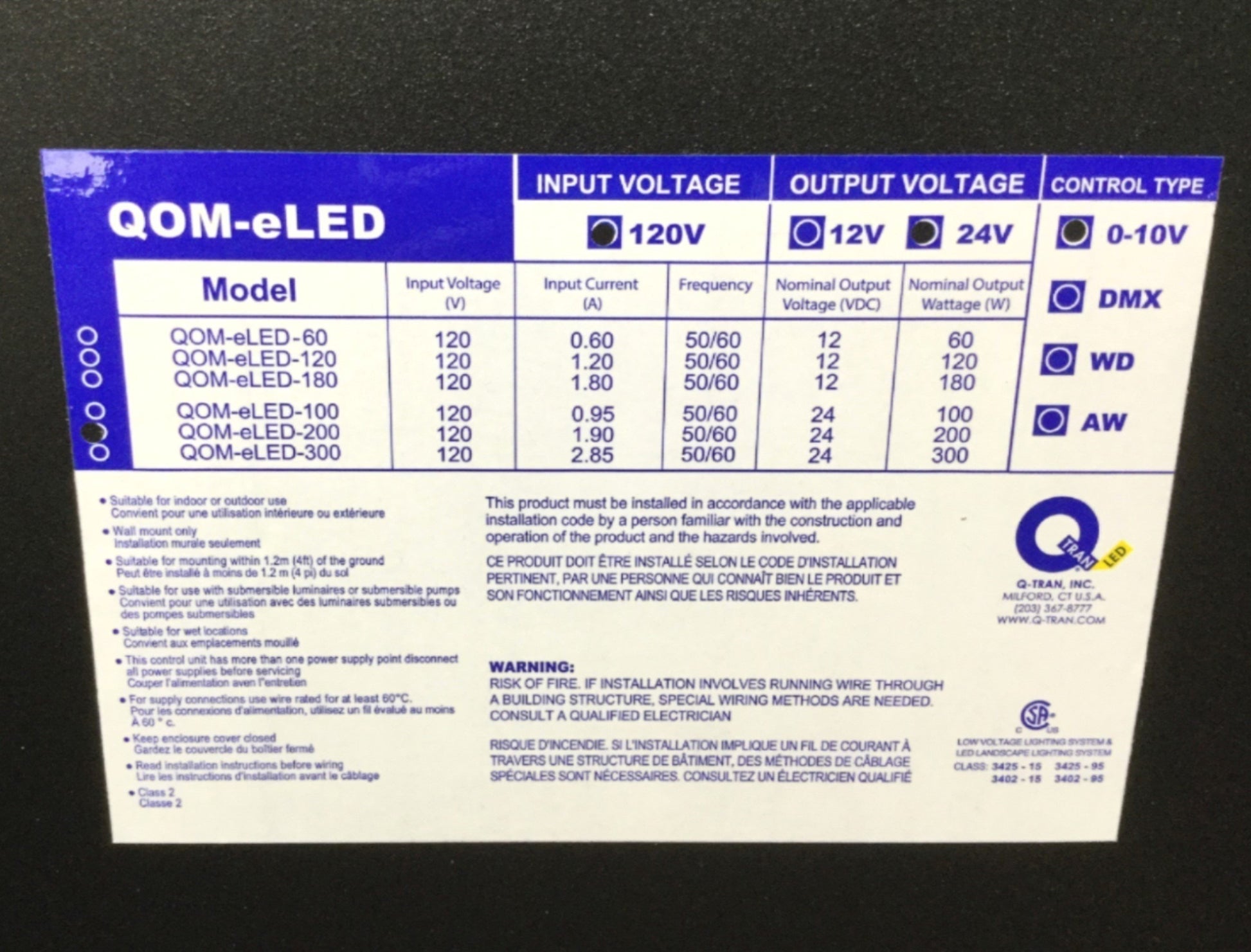 New Q-Tran QOM-eLED-200 LED Driver Lighting Control, 120VAC, Non-Dimming, 24VDC 200W