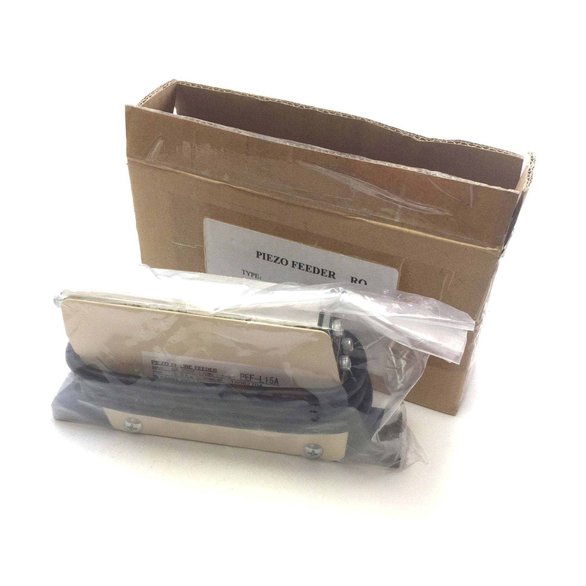 New Sanki Piezo PEF-L15A Vibratory In-line Feeder, Input: 250VAC 300Hz, Mass: 0.8kg