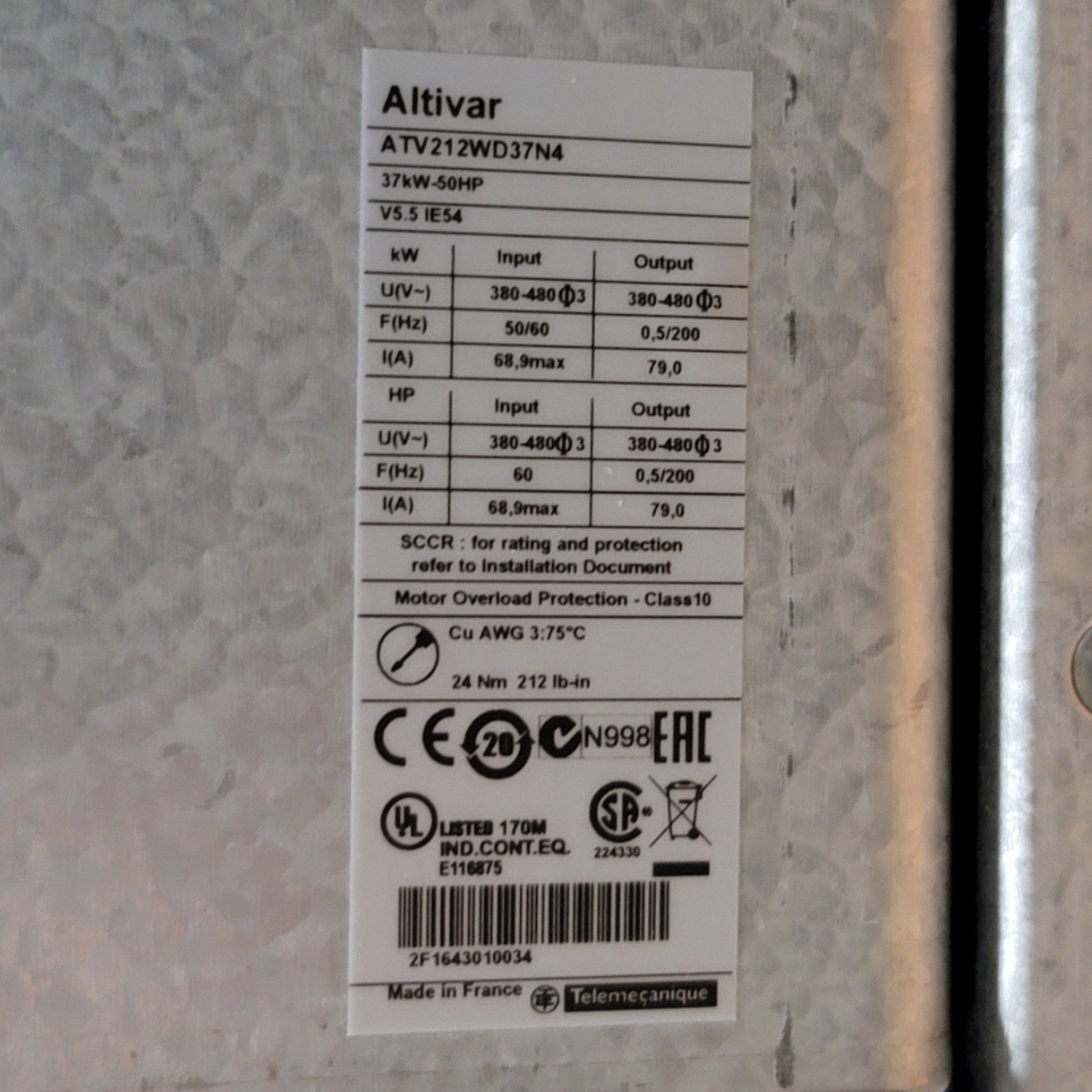 New Schneider Electric ATV212WD37N4 Altivar 212 Variable Speed Drive 50HP, 480V 3-PH