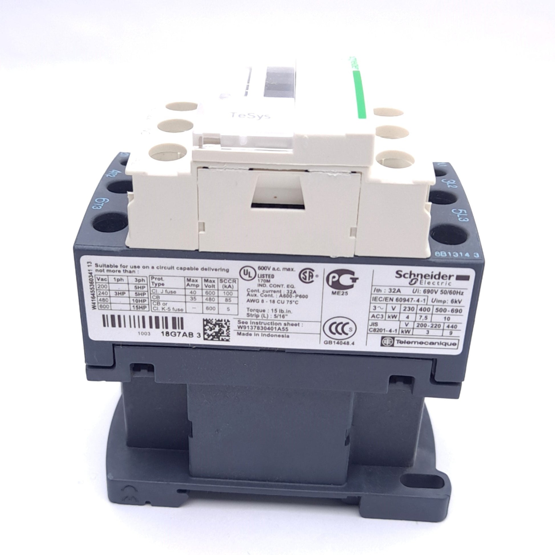 New Schneider Electric LC1D18G7 Contactor, 3-Pole + 1NO 1NC, 18A 600VAC, 120VAC Coil