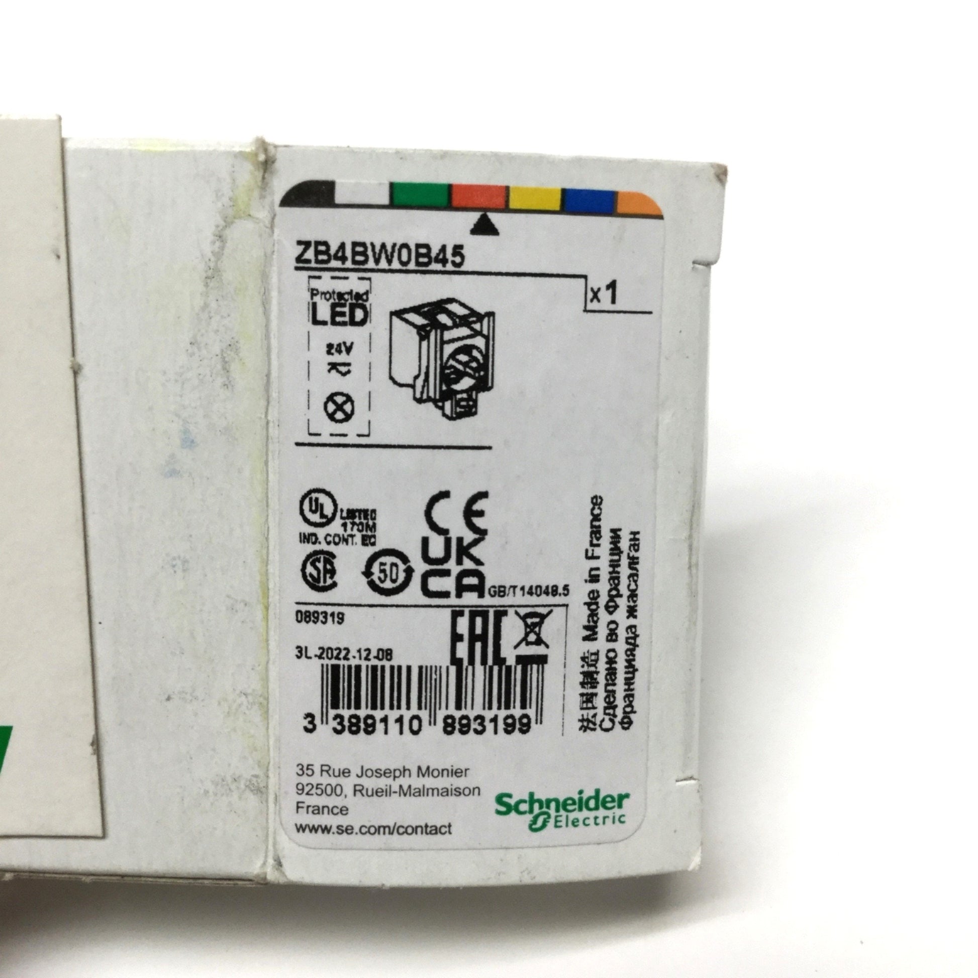 New Schneider ZB4BW0B45 Red LED Light Switch Block w/ Body Fixing Collar 1NO-1NC 24V
