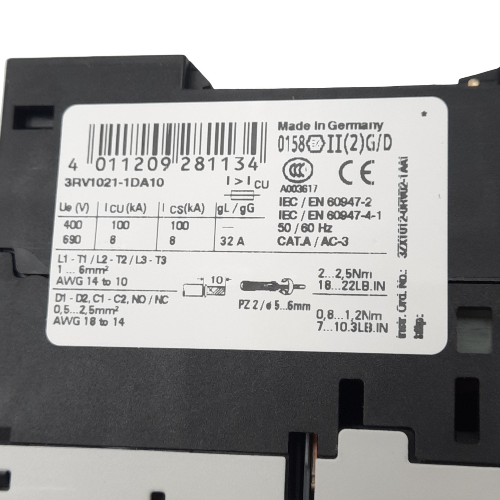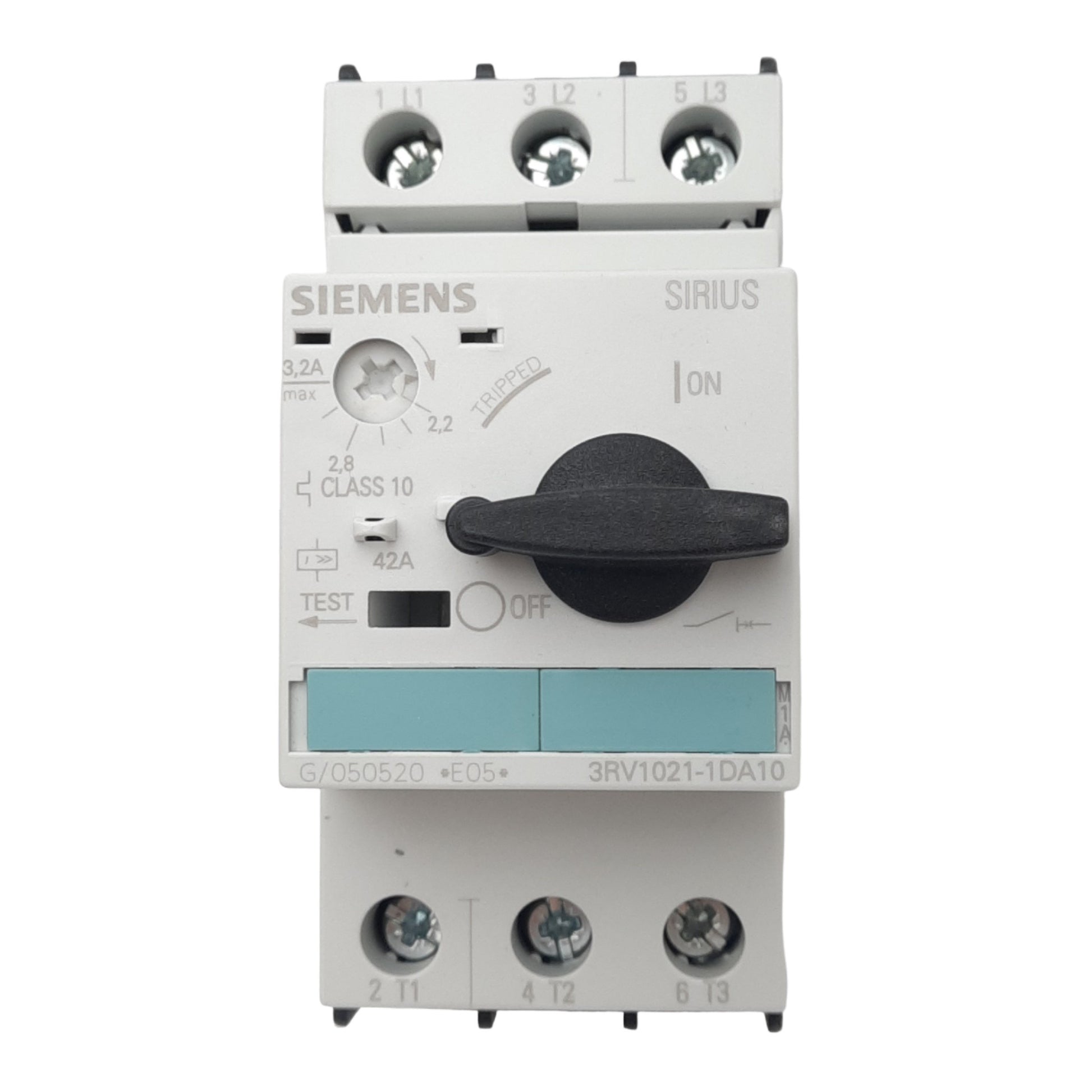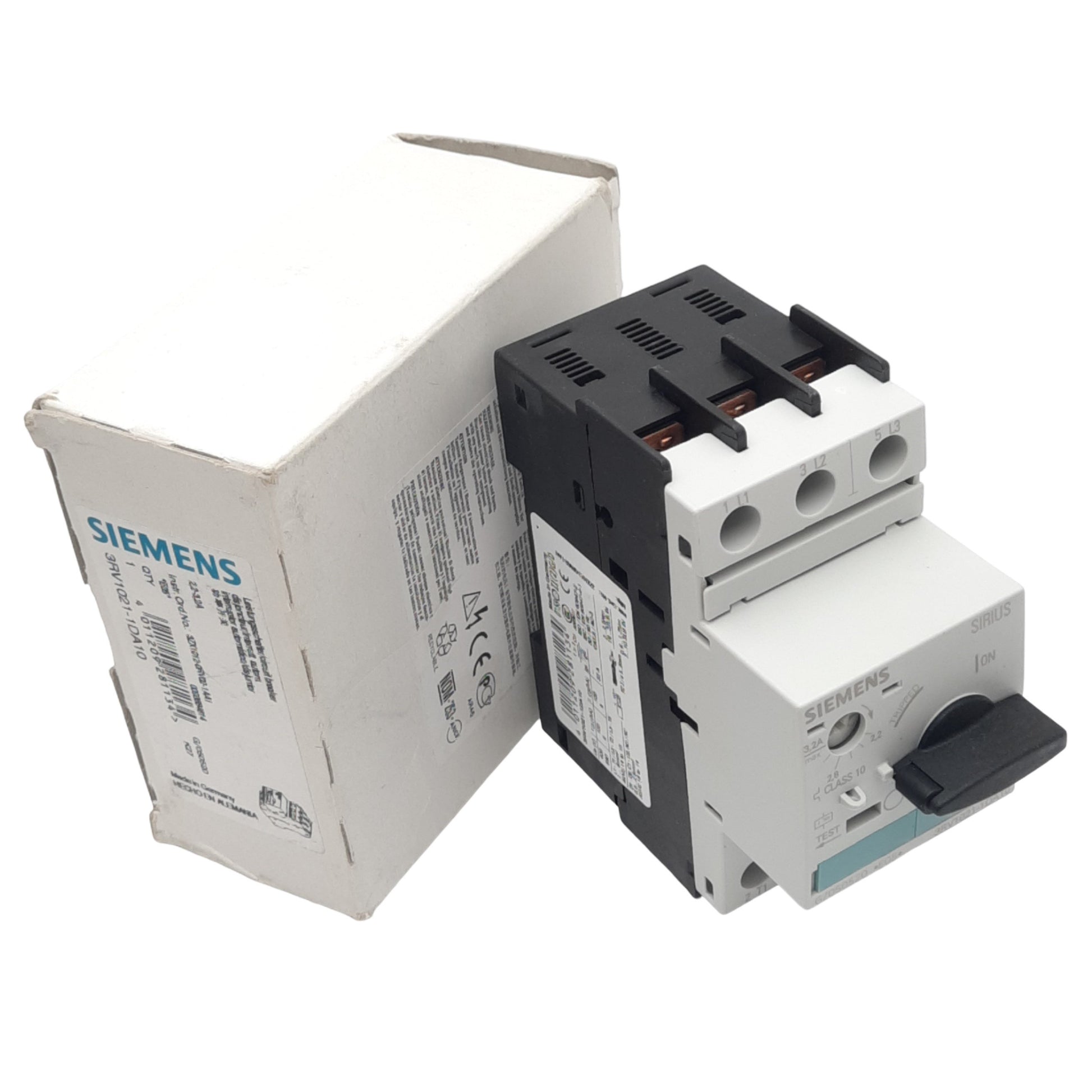 New Siemens 3RV1021-1DA10 Motor Circuit Breaker, 3-Pole, 1NO 1NC Aux, 2.2-3.2A