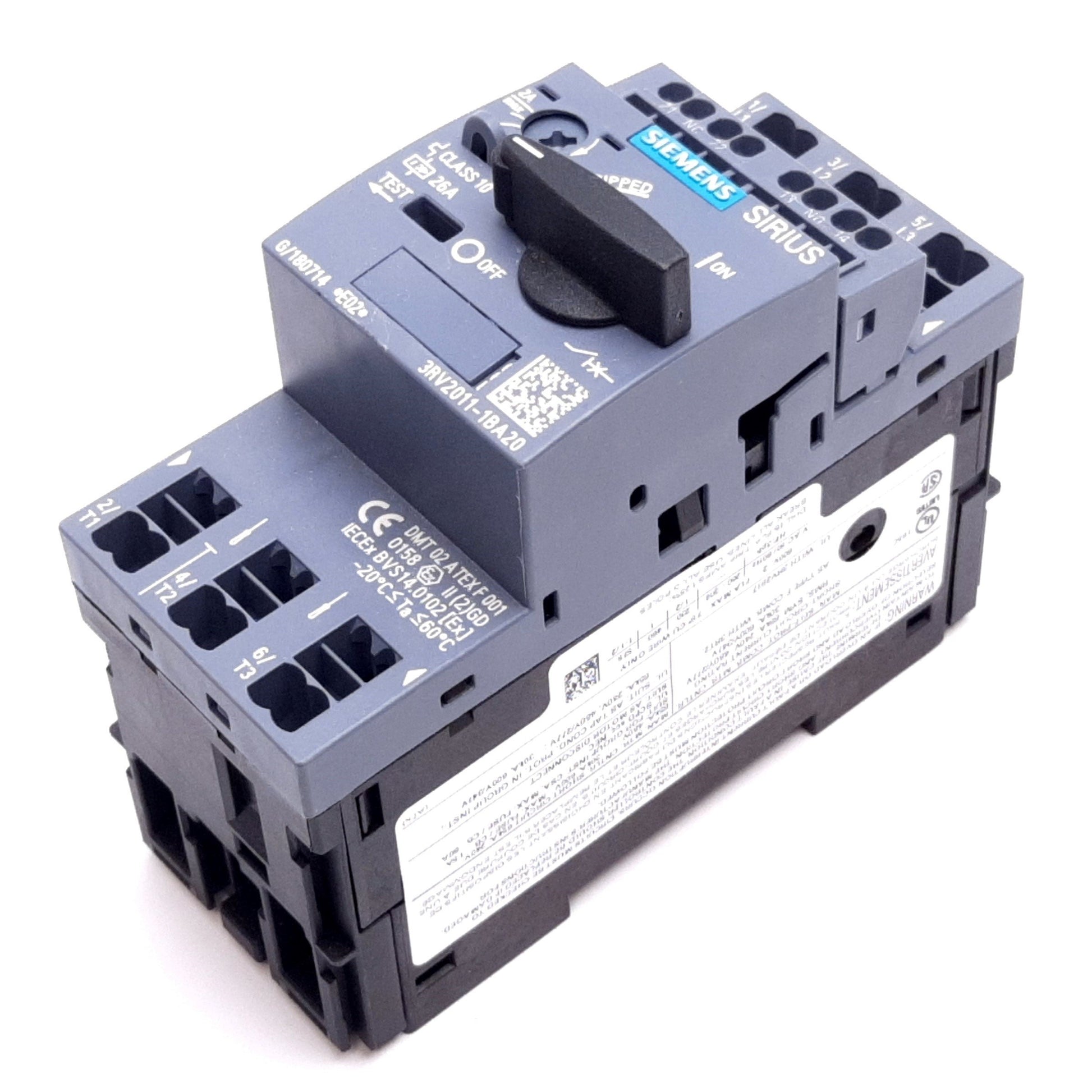 New Siemens 3RV2011-1BA20 Sirius Circuit Breaker, 3-Pole, 1.4-2A, 20-690V, W/ Aux