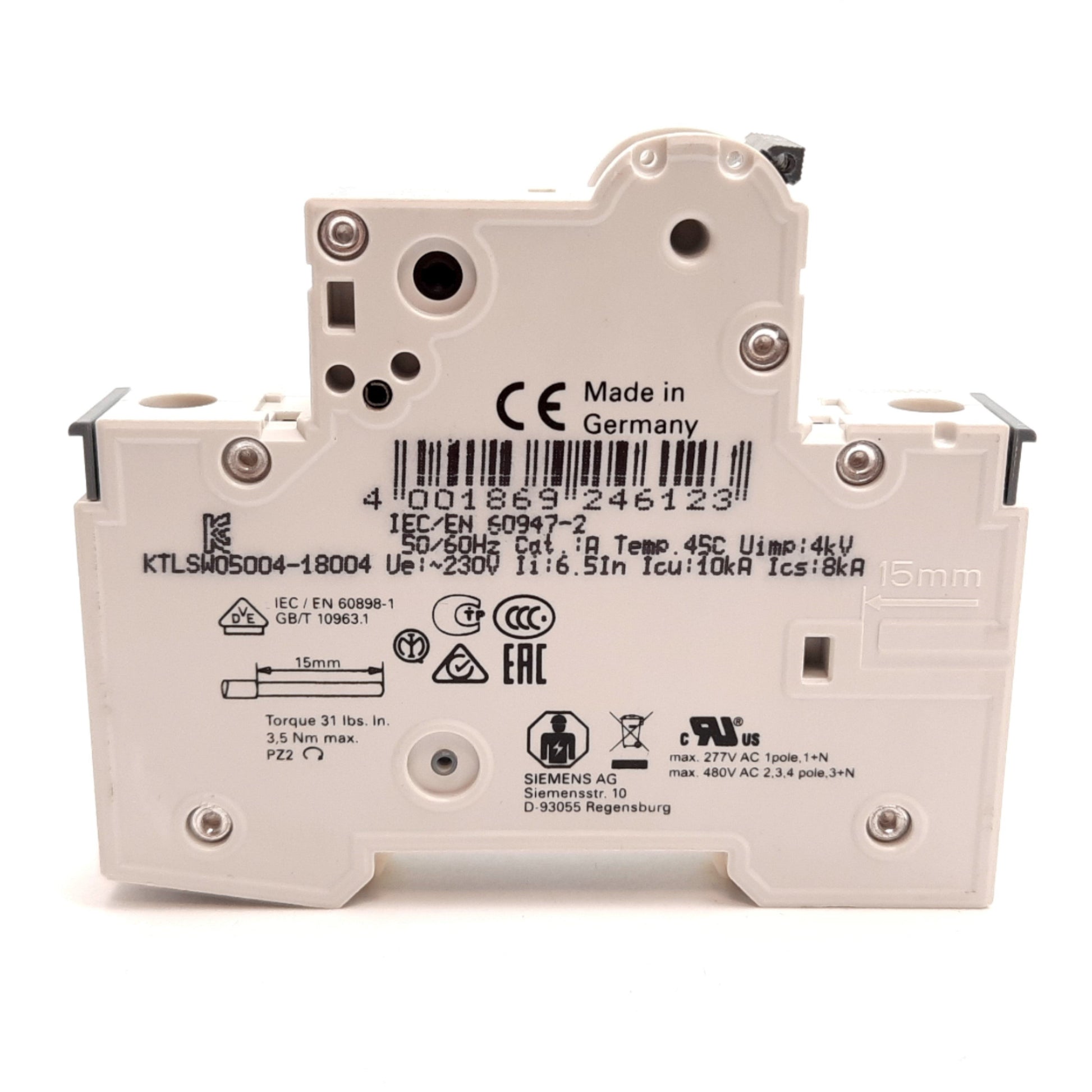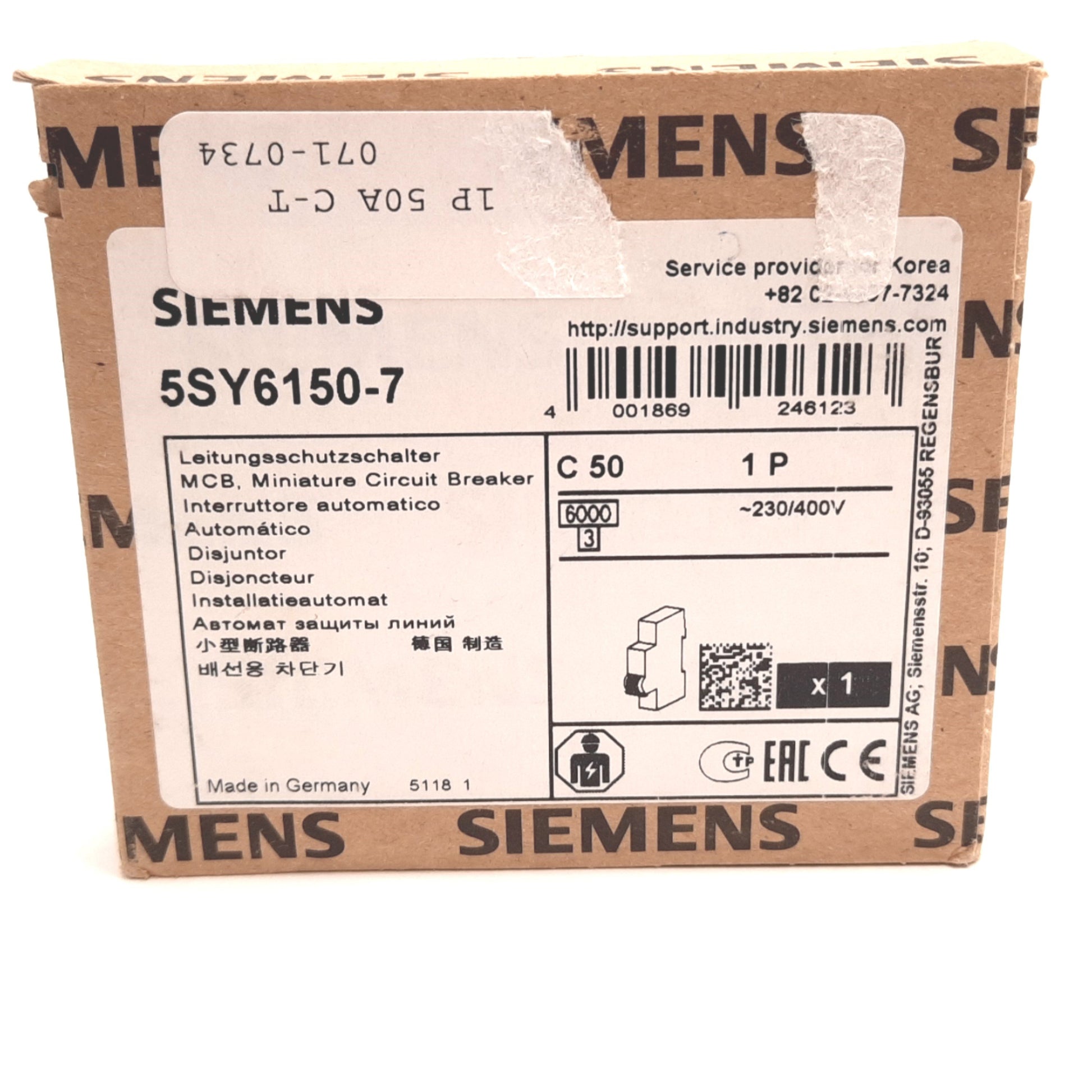 New Siemens 5SY6150-7 Miniature Circuit Breaker, 1-Pole, C-Curve, 50A 230/400VAC