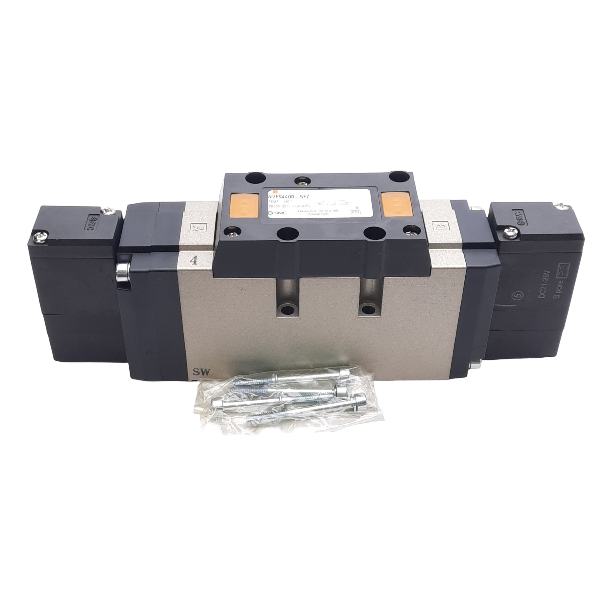 New SMC NVFS4400-5FZ Solenoid Valve 3-Position Exhaust Center, 22-150PSI, 24VDC Coil