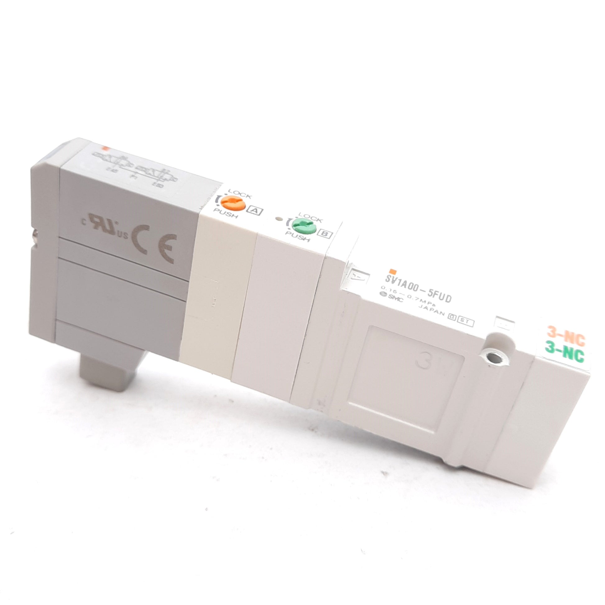 | Item Condition: New SKU: SB-188819 ST12-3-M From our inventory we are selling a SMC SV1A00-5FUD Solenoid Valve 4-Position Dual 3-Port N.C/N.C. 0.15-.07MPa 24VDC. Specifications: