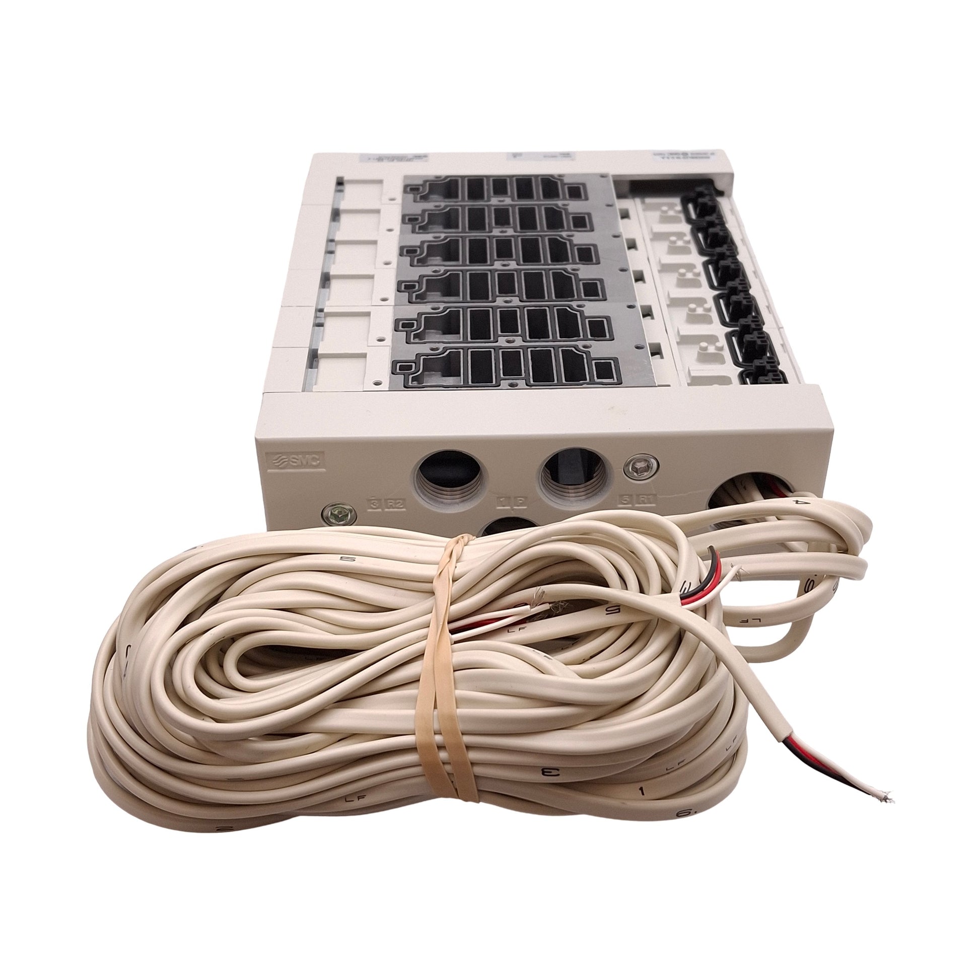 New SMC VV5Q41-0603TLU2 Base Mounted Pneumatic Manifold, 6-Station, NPT3/8, 3m Cable