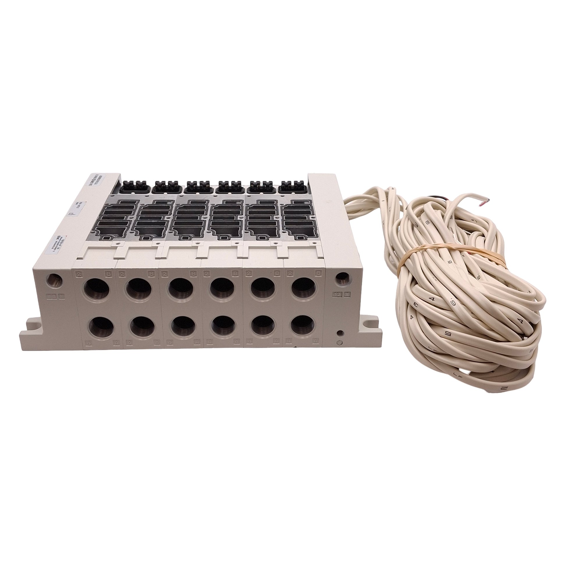 | Item Condition: New SKU: SB-198571 R2-2-B From our inventory we are selling a SMC VV5Q41-0603TLU2 Base Mounted Pneumatic Manifold, 6-Station, NPT3/8, 3m Cable. Specifications: