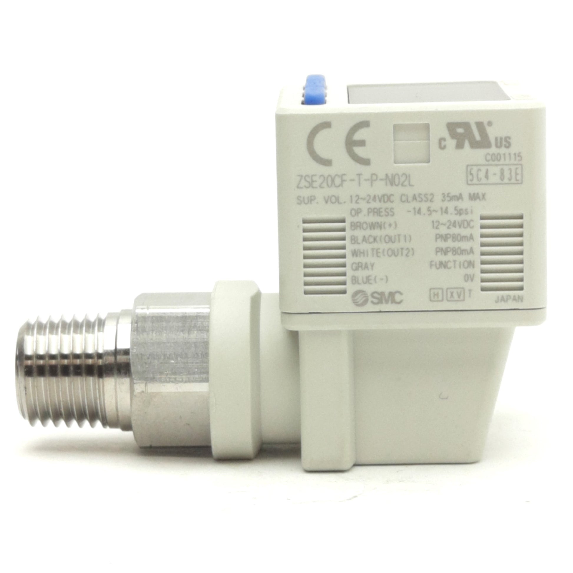 | Item Condition: New SKU: SB-181533 ST28-2-E From our inventory we are selling a SMC ZSE20CF-T-P-N02L-W Pressure Switch, -100 to 100kPa, 2 PNP, 12-24VDC 35mA. Specifications: