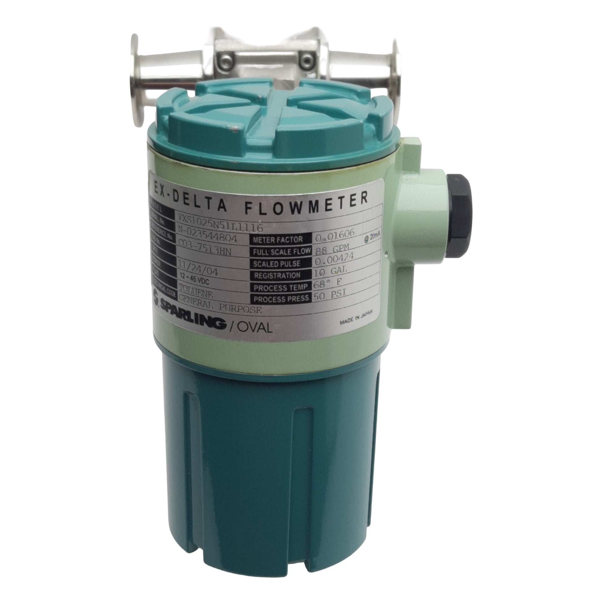 New Sparling VXS1025N51L1116 EX-DELTA Flowmeter 12-45VDC, 88gpm, 50psi, 10gal, 1" TC