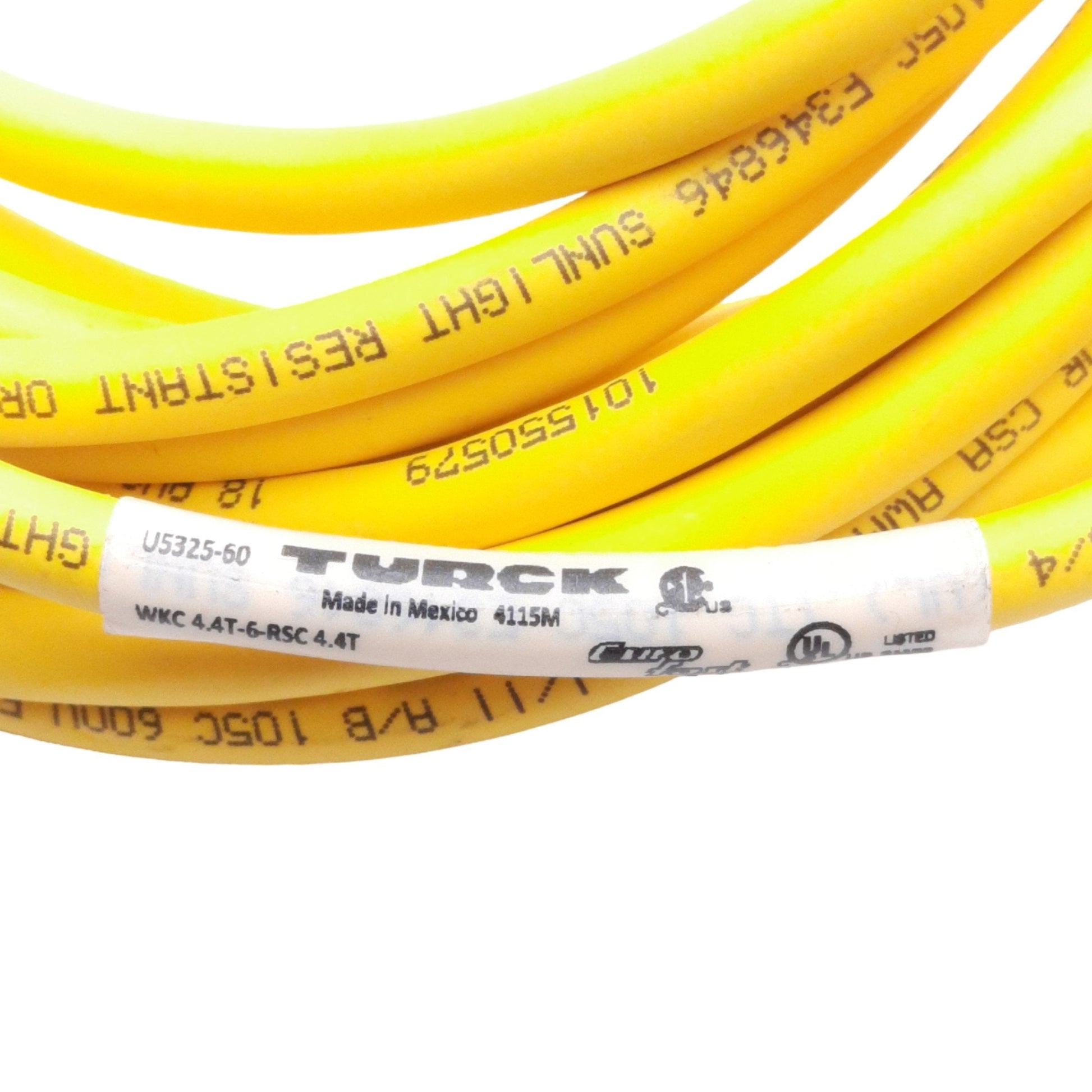 | Item Condition: New SKU: SB-196115 ST32-3-B From our inventory we are selling a Turck WKC 4.4T-6-RSC 4.4T Cordset, M12 4-Pin M/F, 6 Meters, 250VAC/DC 4A. Specifications: