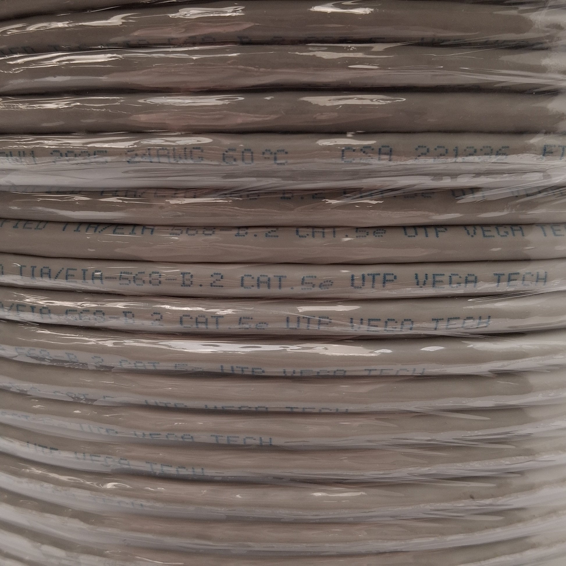 New Vega Tech Ethernet Cable, Cat.5e, TIA/EIA-569-B.2, E189529, AWM 2835, 500ft