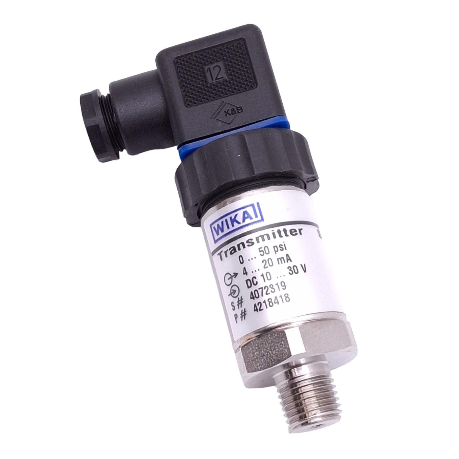 New Wika S-10 891.13.500 Pressure Transmitter, 0-15psi, 10-30VDC In, 4-20mA Out
