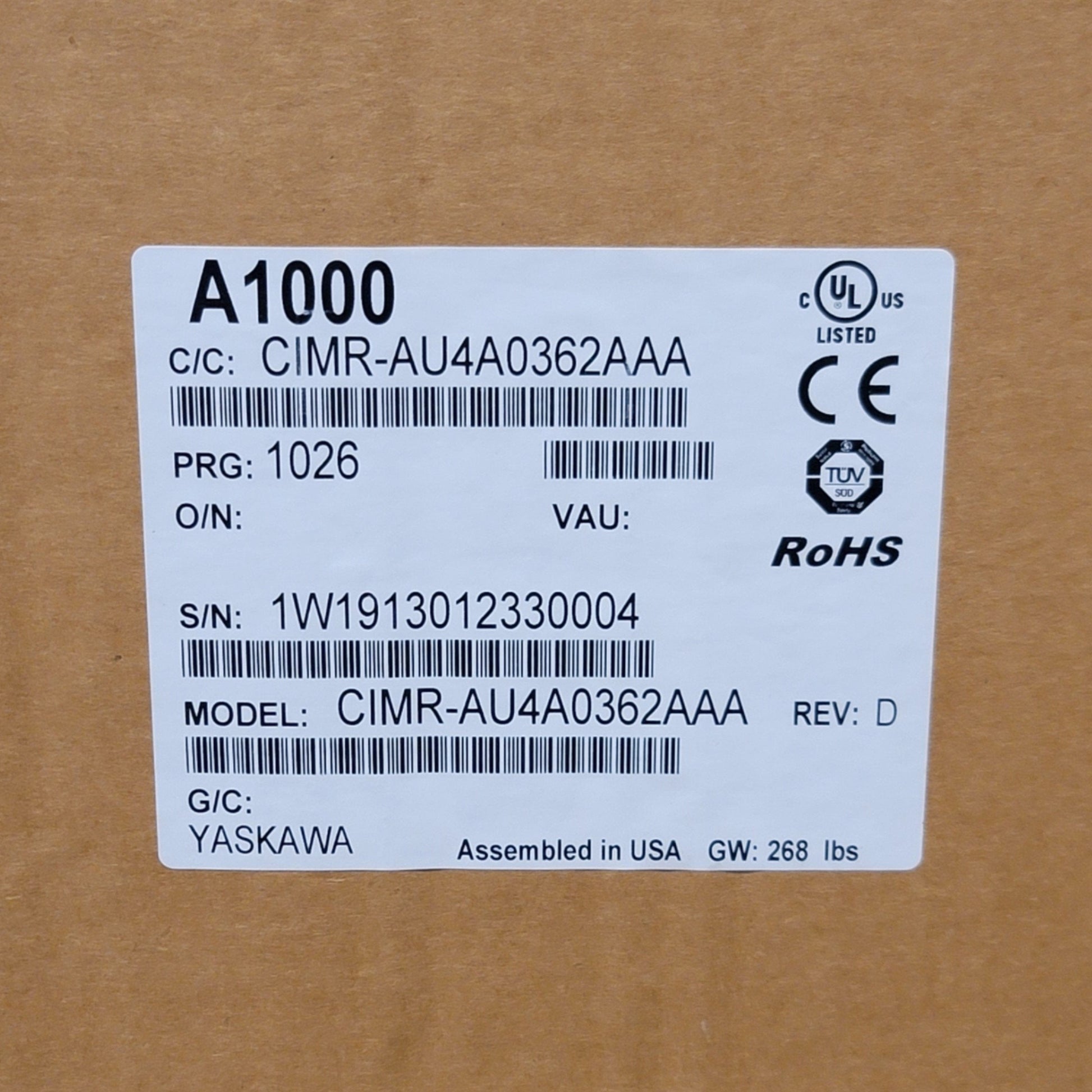 New Yaskawa CIMR-AU4A0362AAA A1000 Variable Speed Drive 300HP 362A 380-480VAC 3-Ph
