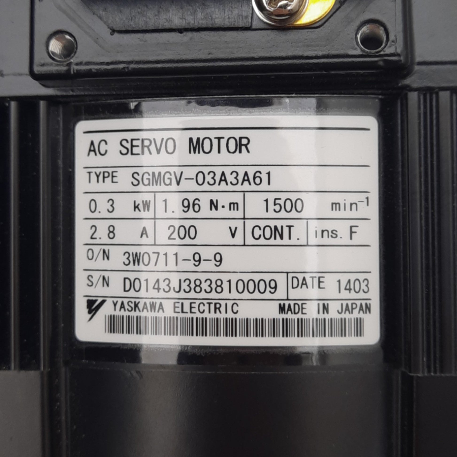 New Yaskawa SGMGV-03A3A61 Sigma 5 Servo Motor, 0.3kW, 1.96Nm, 1500rpm, 200VAC 2.8A