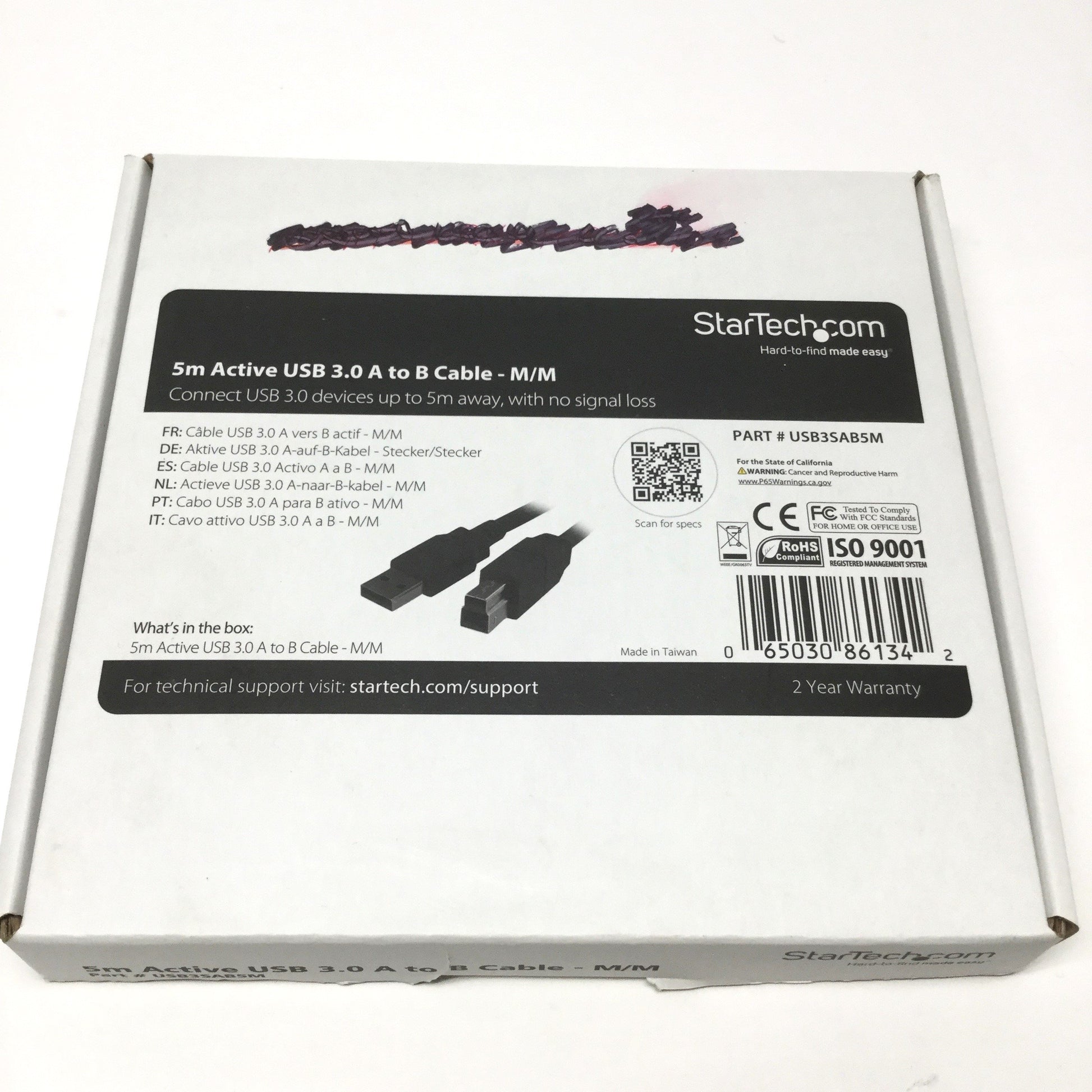 Open box Startech USB3SAB5M Active USB 3.0 USB-A to USB-B Cable M-M, 5m Long, 5Gbps