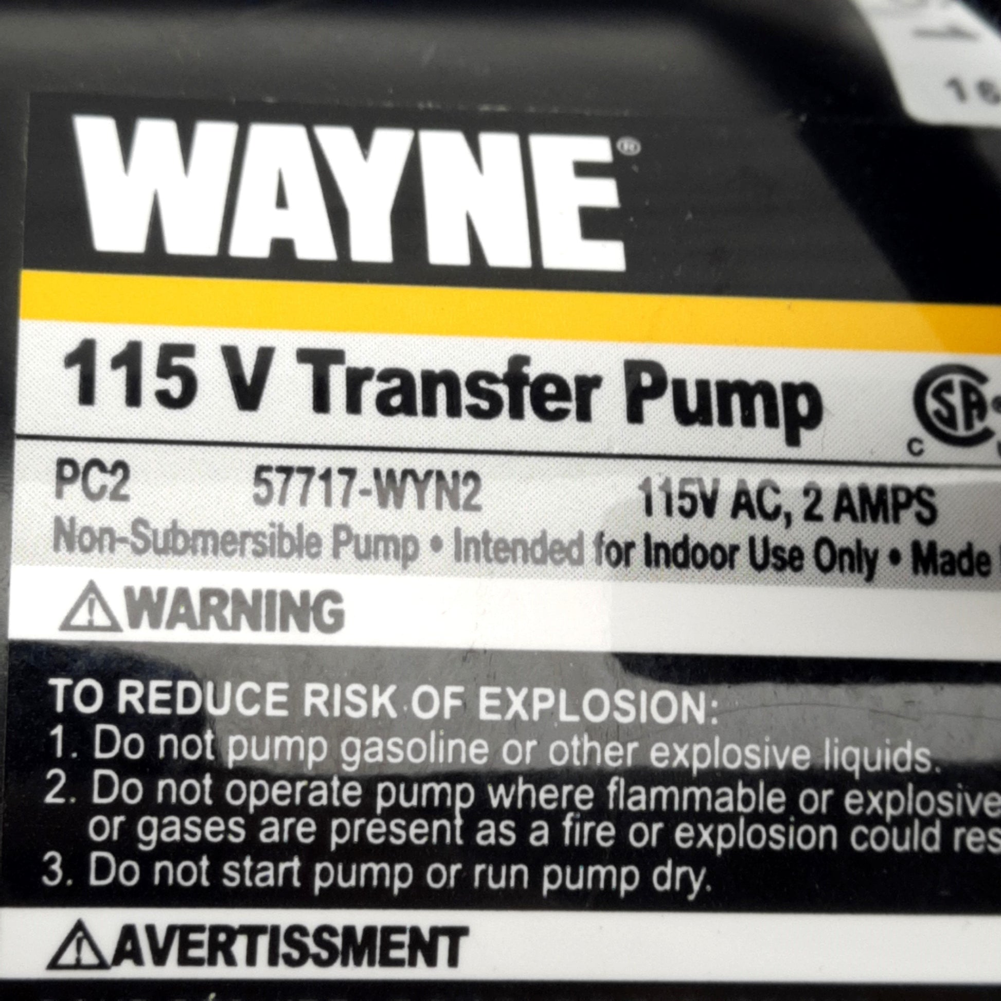 Open box Wayne 57717-WYN2 PC2 Transfer Pump, 115VAC 2A, ø3/4in Hose Fitting, 390GPH Max
