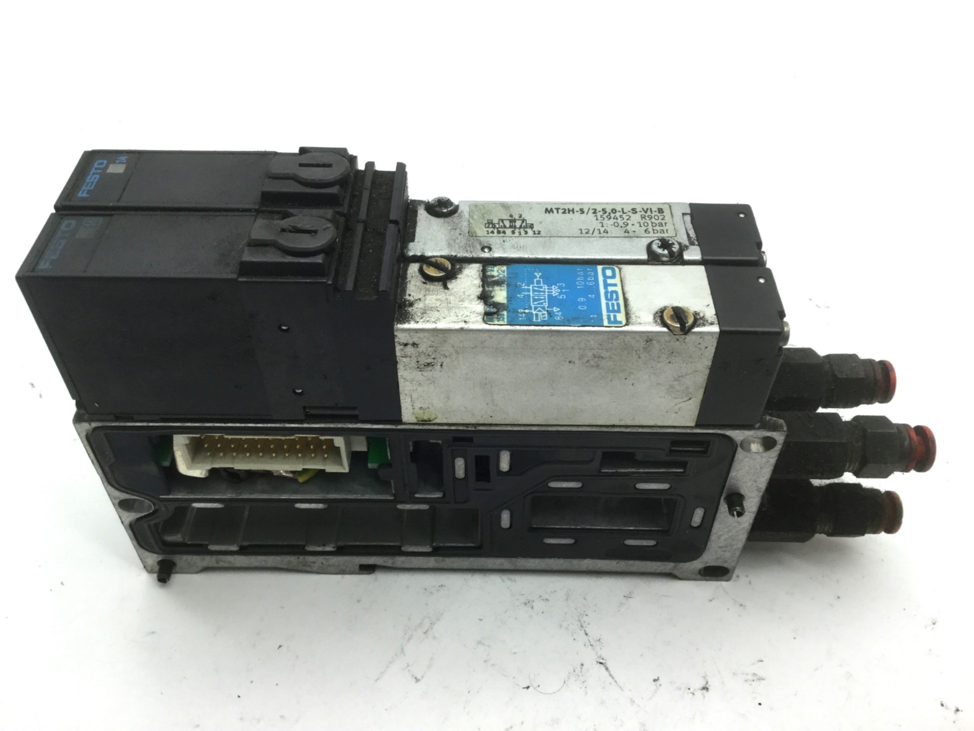 | Item Condition: Used SKU: SB-142343 ST16-6-A From our inventory we are selling a 2x Festo MT2H-5/2-4.0-L-S-VI Solenoid Valves, On VIGM-03-4.0 Manifold Block. Specifications: