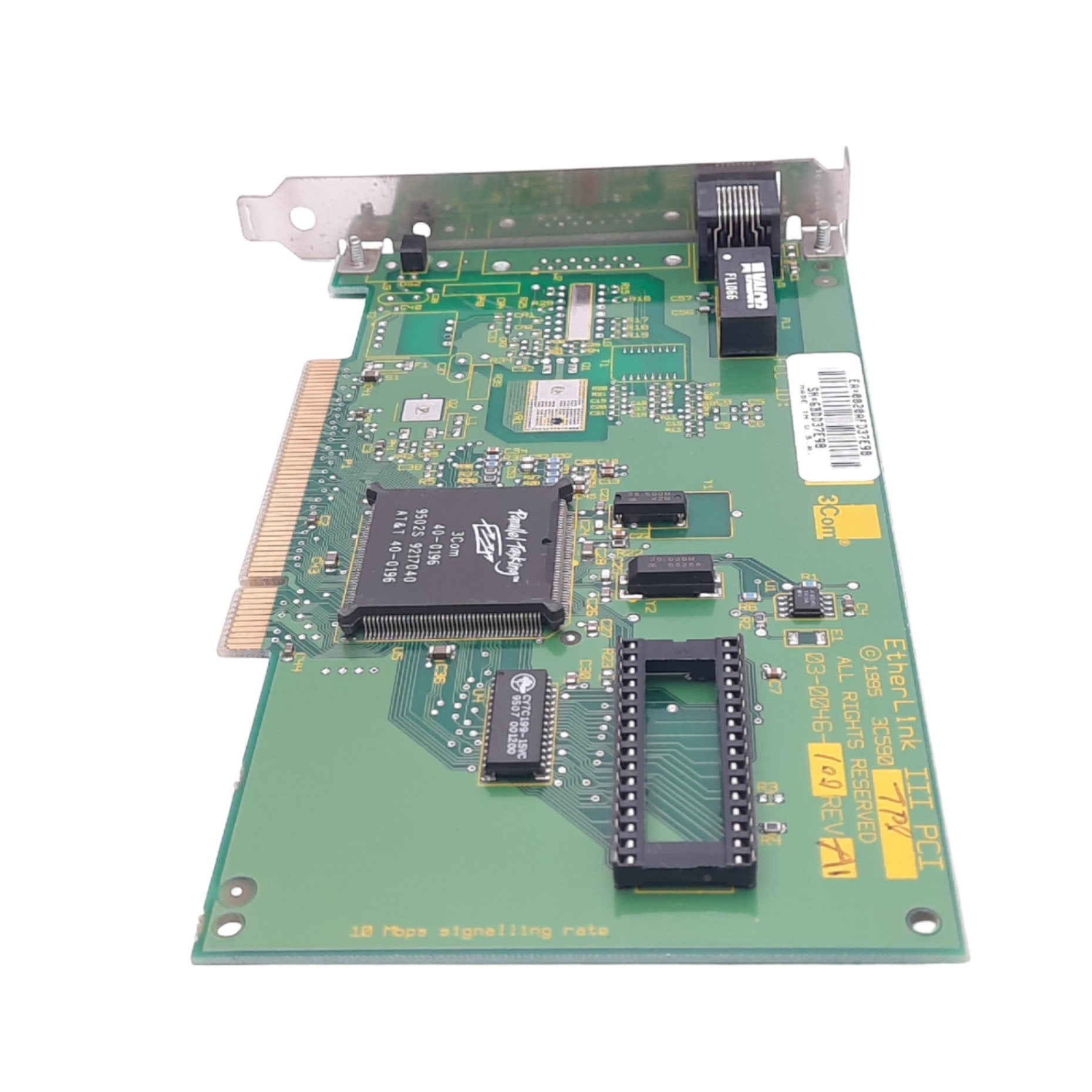 Used 3Com 03-0046-100 Rev A1 EtherLink III PCI Network Card, 10Mbps Max, RJ45