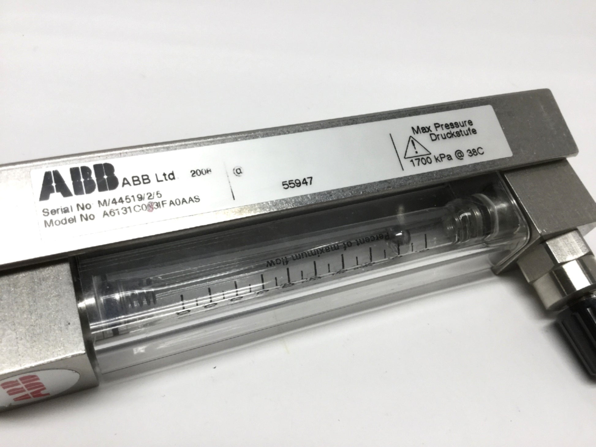 Used ABB A6131C083IFA0AAS Purgemaster SS Flowmeter, Percentage of Max Flow, 1/4" NPT