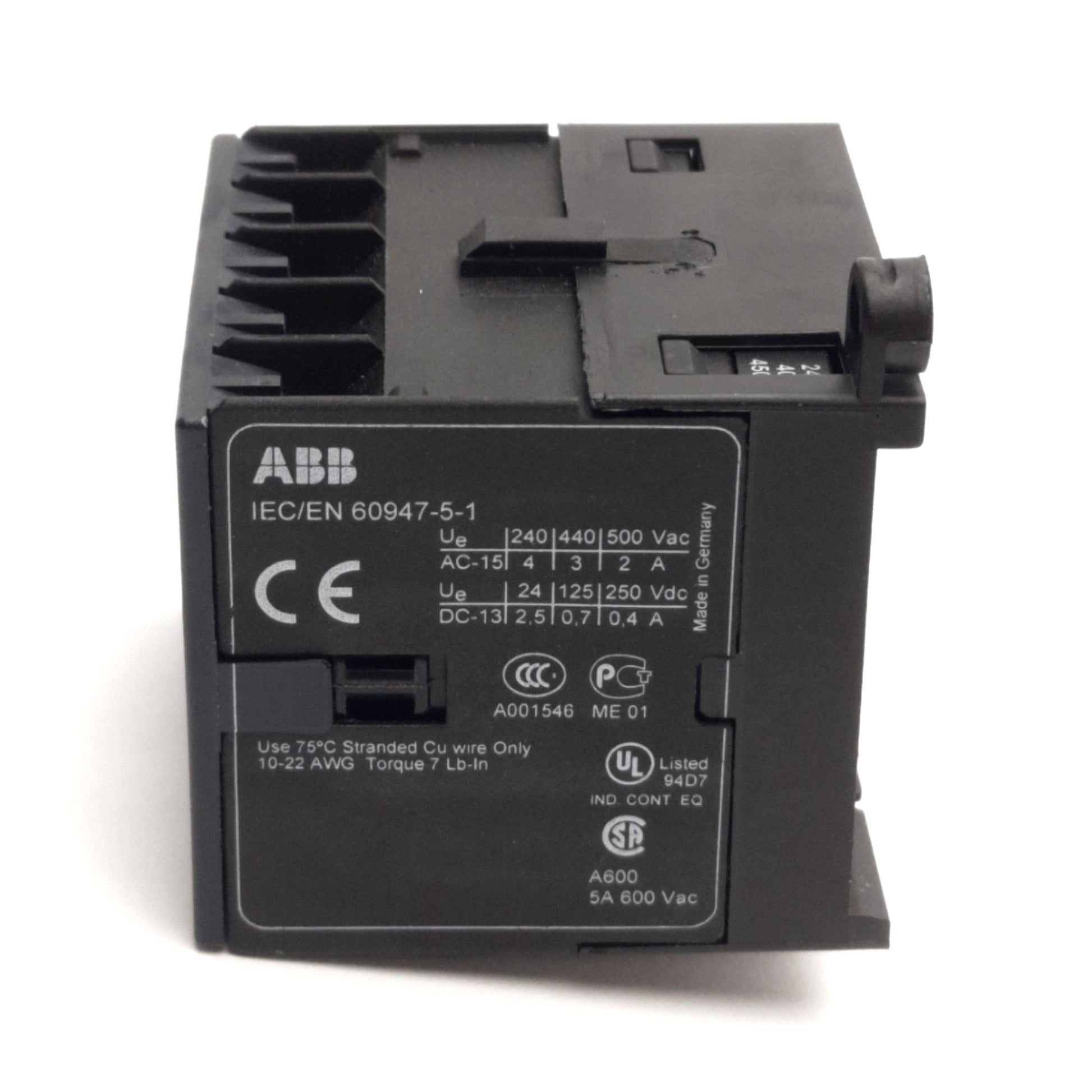 Used ABB K6-40E Mini Contactor, 4-NO, 600VAC 5A, DIN Mount, 24VAC 40-450Hz Coil