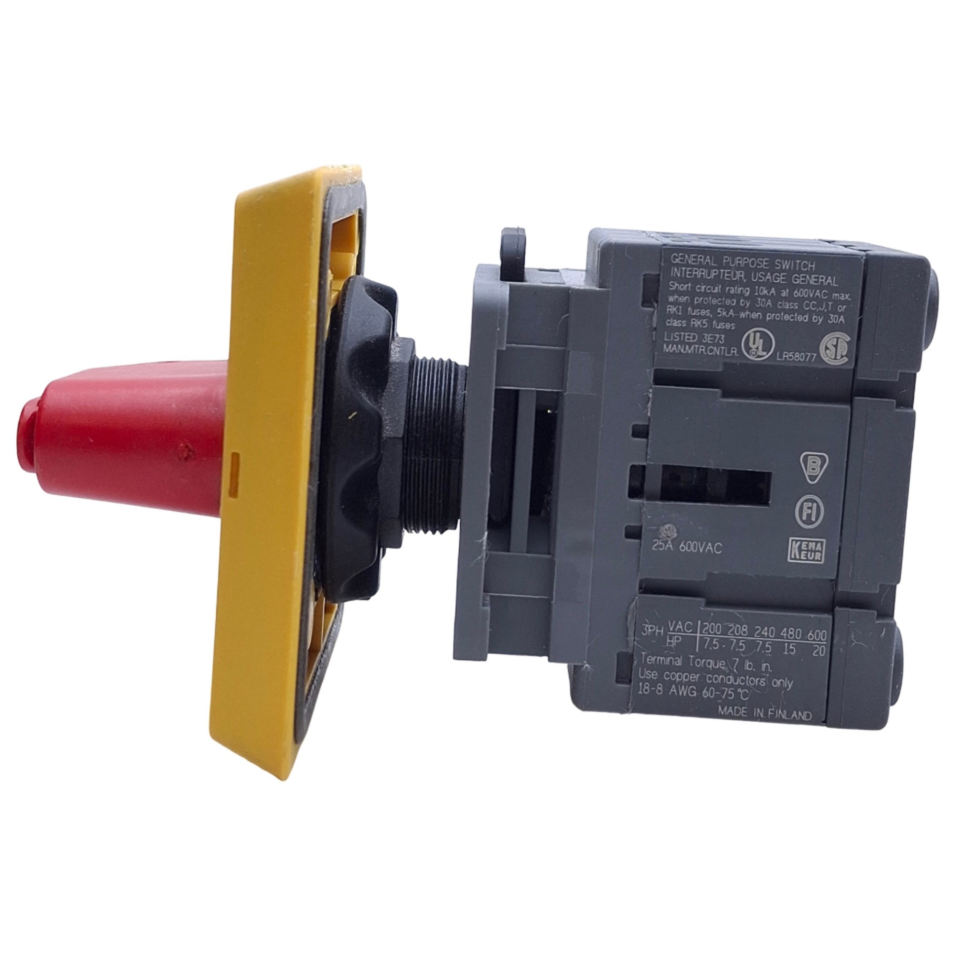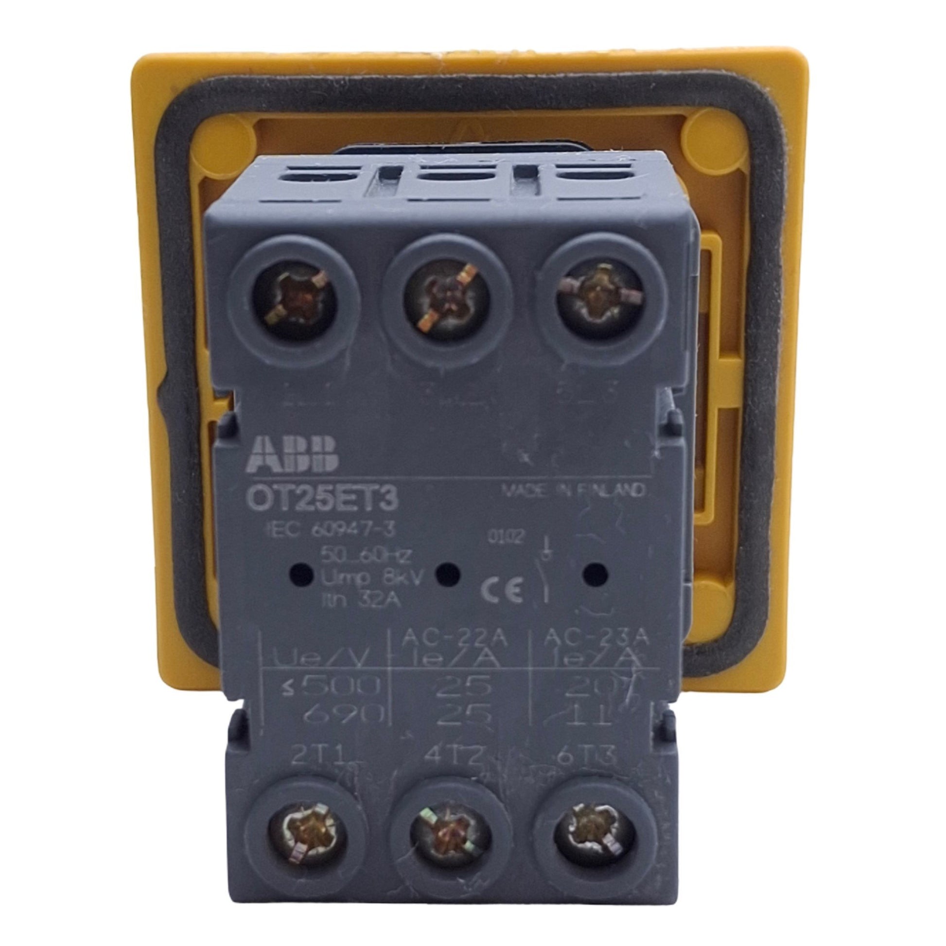 Used ABB OT25ET3 Disconnect Rotary Switch 2-Position, 3-Pole, Panel Mount, 25A 600VAC