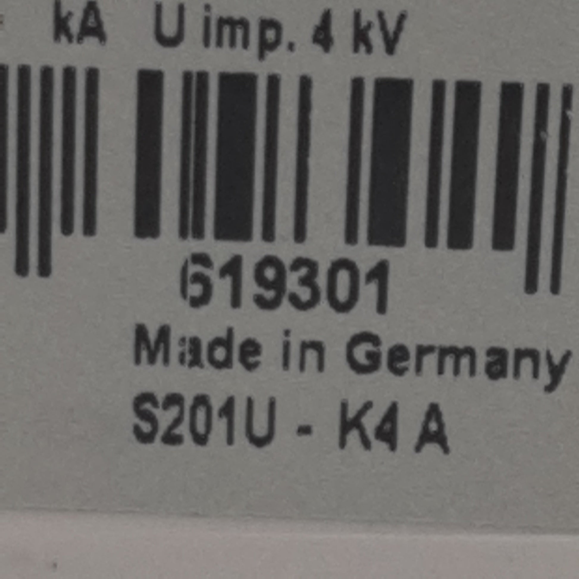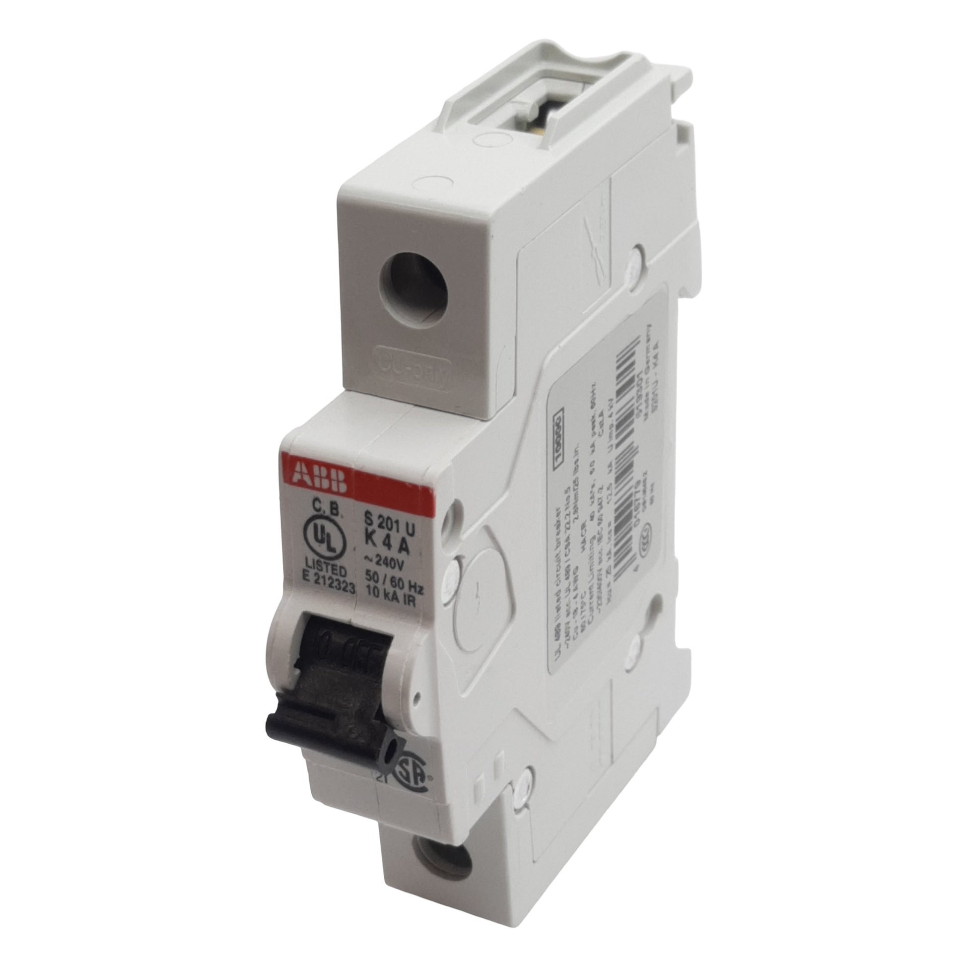 Used ABB S201U-K4 Circuit Breaker, 1-Pole, 4A 240VAC, K-Curve, DIN Rail Mount