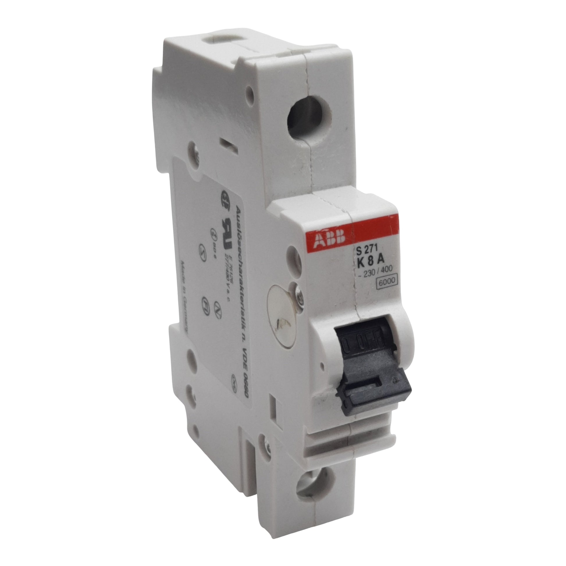 Used ABB S271-K8 Circuit Breaker, 1-Pole, 8A 230/400VAC, K-Curve, DIN Rail Mount