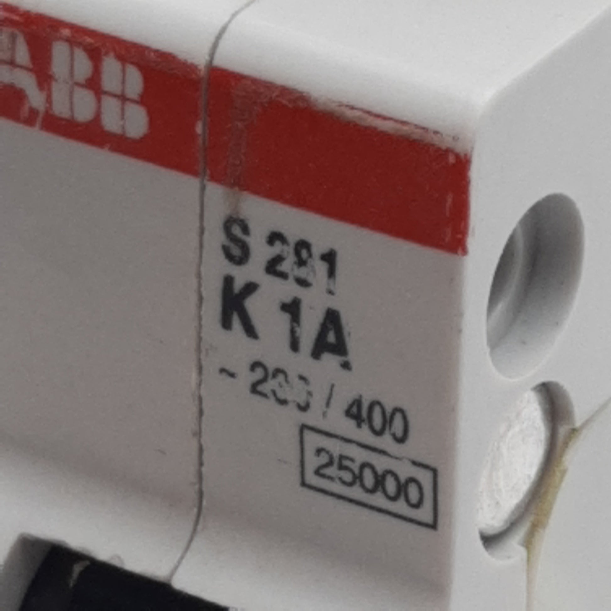 Used ABB S281-K1 Circuit Breaker, 1-Pole, 1A 230/400VAC, K-Curve, DIN Rail Mount