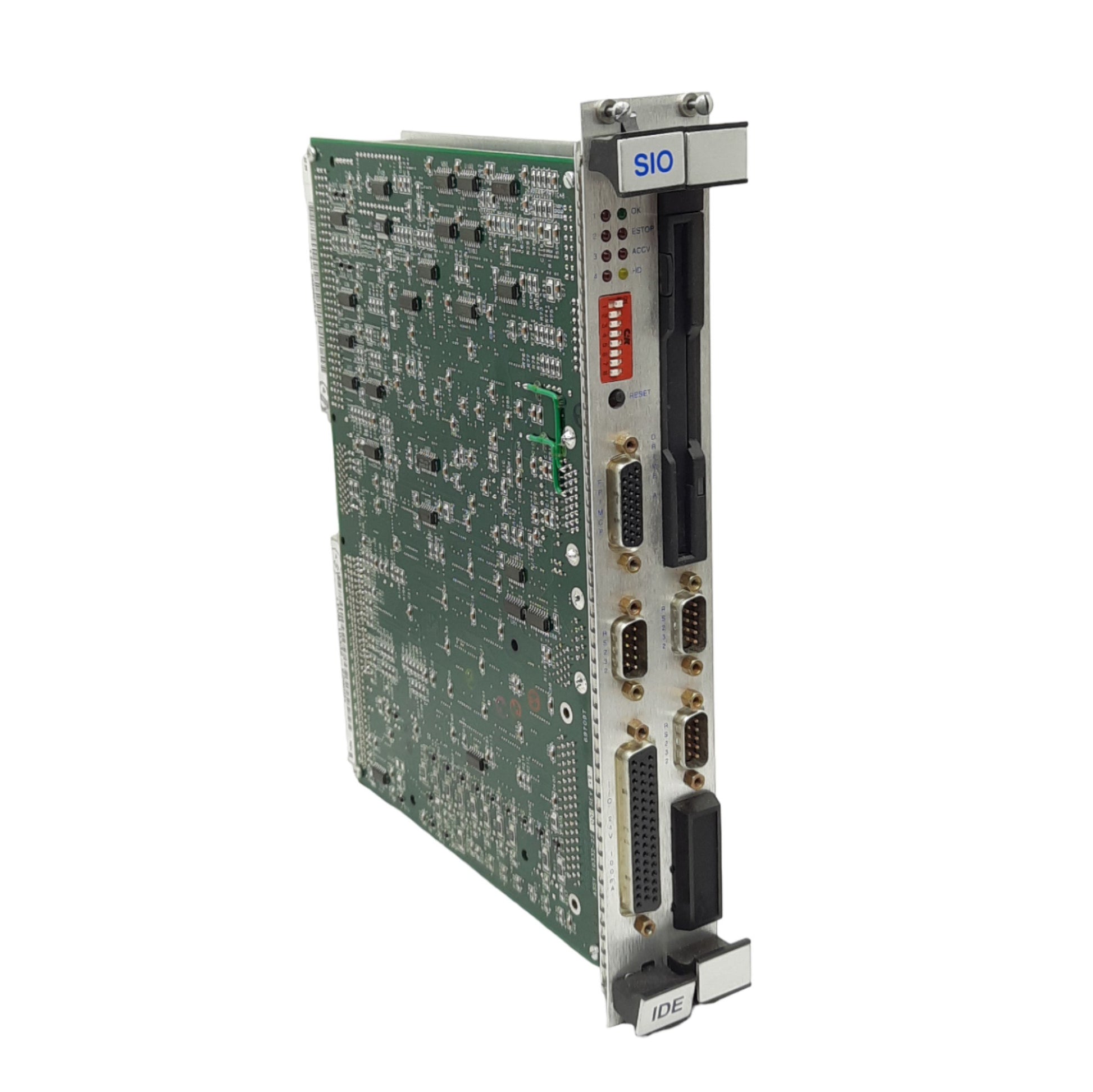 | Item Condition: Used SKU: SB-203417 ST62-6-F From our inventory we are selling a Adept 10332-22000 Rev. E SIO IDE FDD/HDD Module Card for MV Controller, 3x RS232. Specifications: