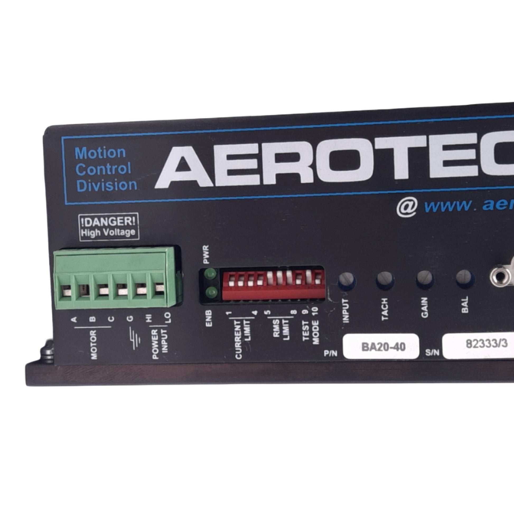 Used Aerotech BA20-40 Servo Amplifier, 28VAC In, 40VDC 3PH Bus, 1-Axis, 115/240VAC