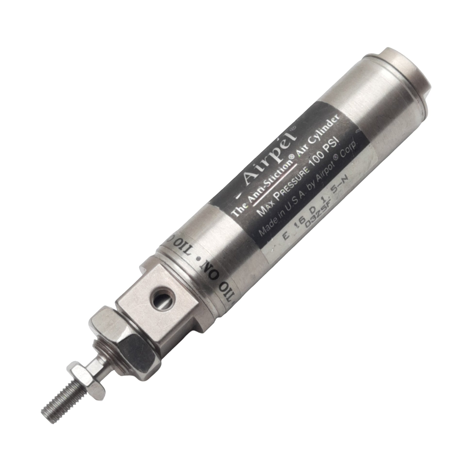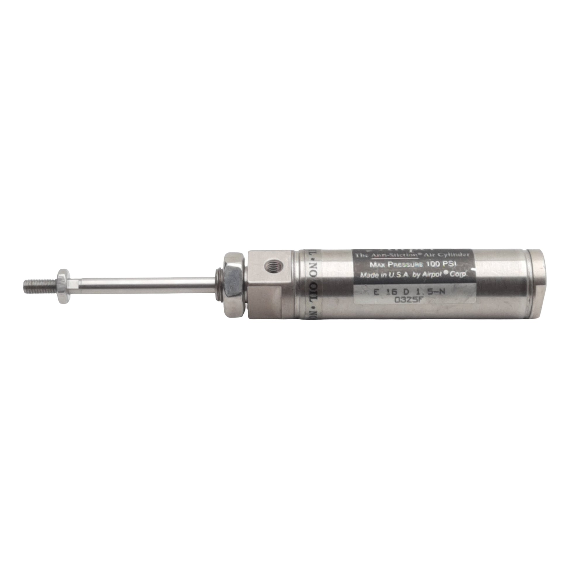 Used Airpel E16D1.5N Pneumatic Cylinder, ø0.627in Bore, 1.5in Stroke, #10-32, 100psi