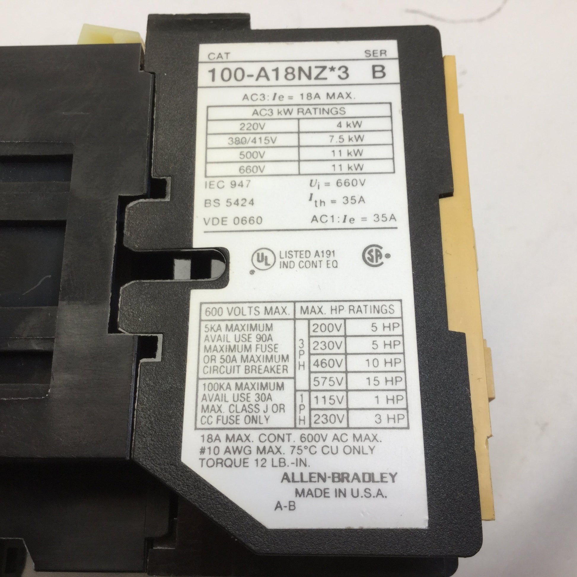 | Item Condition: Used SKU: SB-136940 ST20-4-F From our inventory we are selling a Allen Bradley 100-A18NZ*3 Motor Starter, 4-Pole, 660VAC Max, 35A. Specifications: