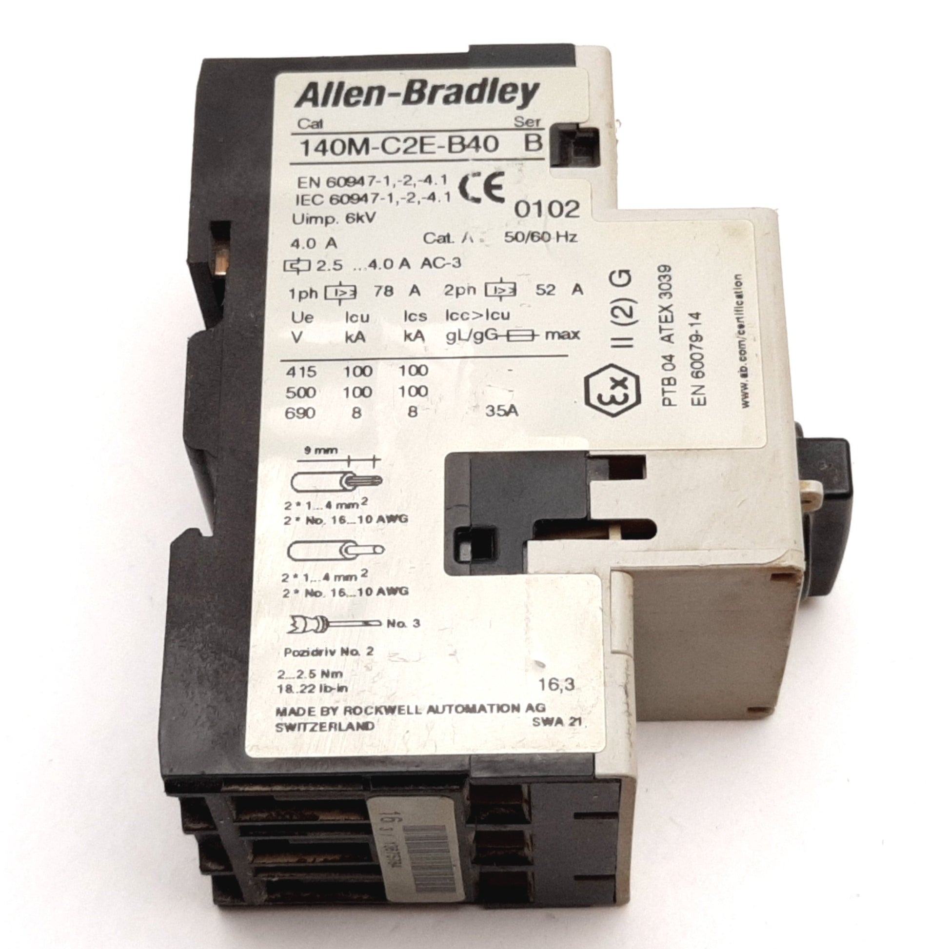 | Item Condition: Used SKU: SB-171439 ST3-5-D From our inventory we are selling an Allen Bradley 140M-C2E-B40 Motor Protector Circuit Breaker 3-Pole 2.5-4.0A 600V. Specifications: