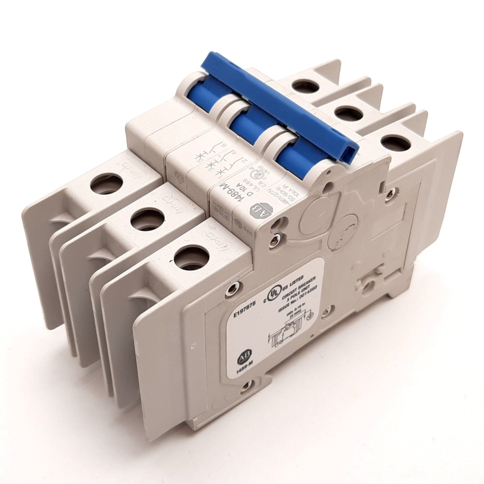 Used Allen Bradley 1489-M3D100 Miniature Circuit Breaker 3-Pole, 10A, 277VAC, D-Curve